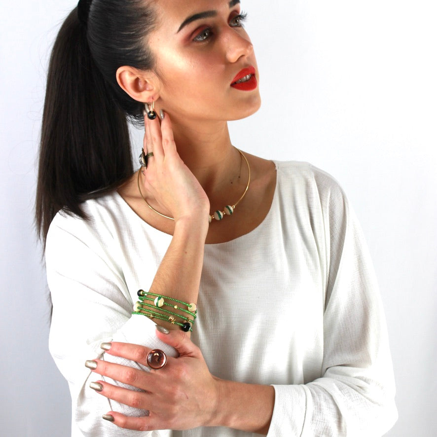 Associez les couleurs des bagues à celles des bracelets, ras de cou ou des boucles en composant vous-même une harmonie inédite !