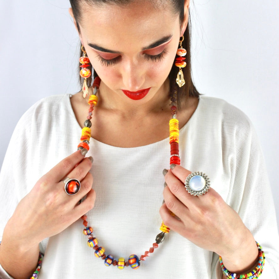 Associez les couleurs des bagues à celles des bracelets, ras de cou ou des boucles en composant vous-même une harmonie inédite !