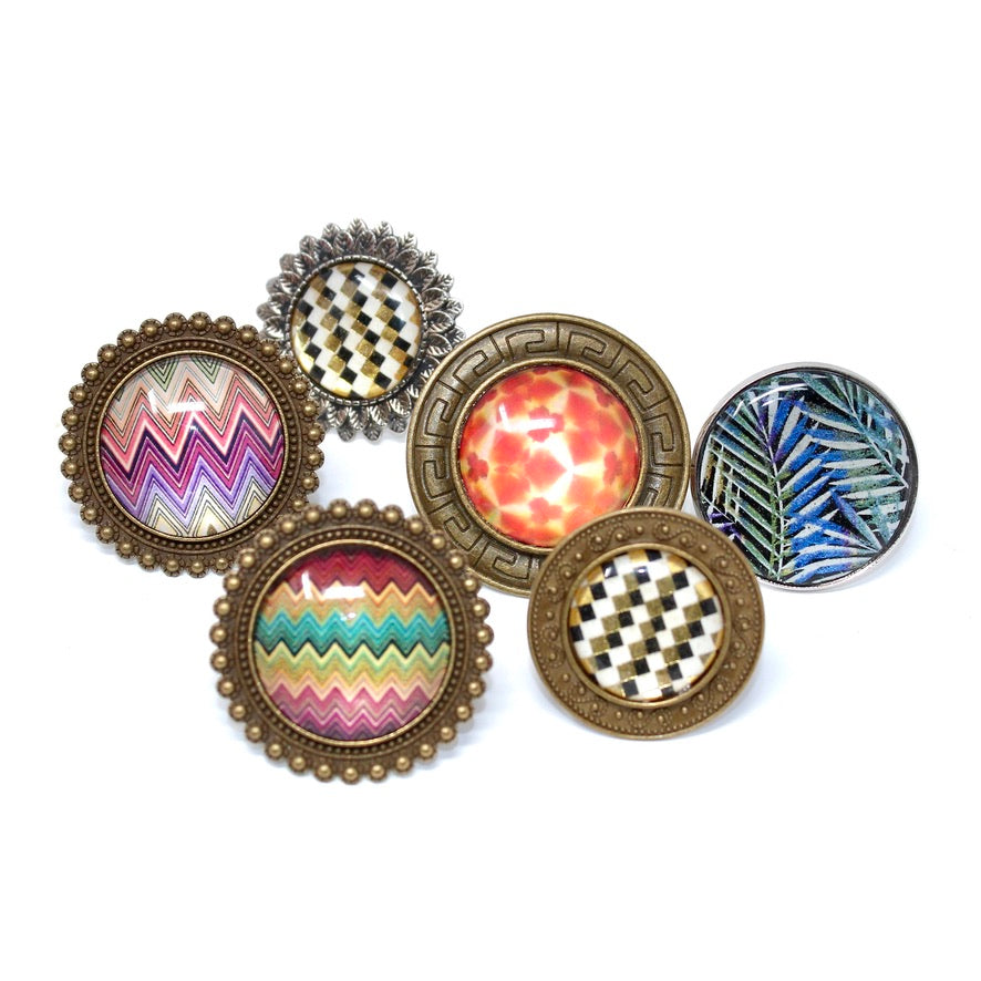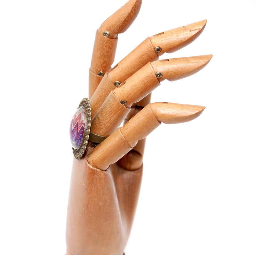 Bague dorée Cabochon Rond Graphic Vagues Multicolores – Labelle Ikeya Création Originale