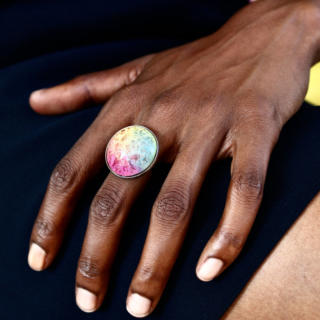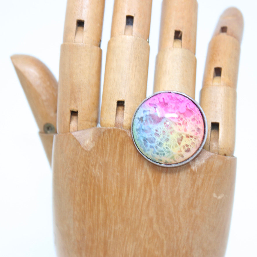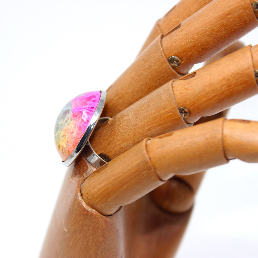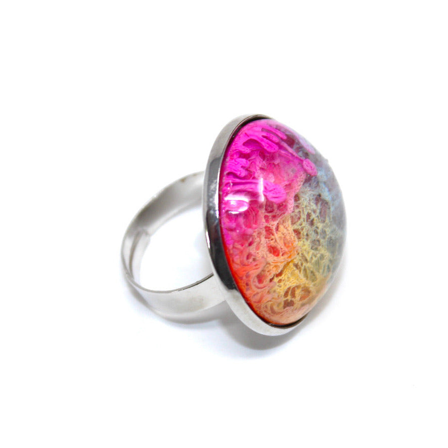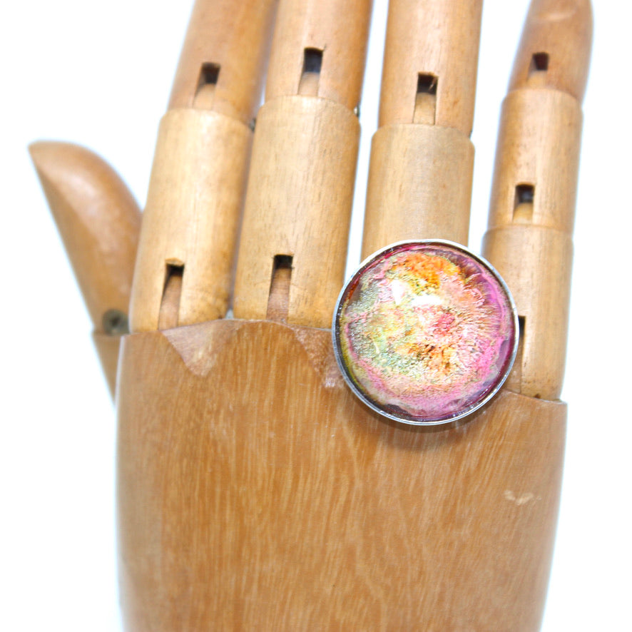 Bague Réglable Ronde Pâte Polymère Nébuleuse Rose