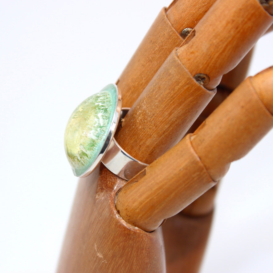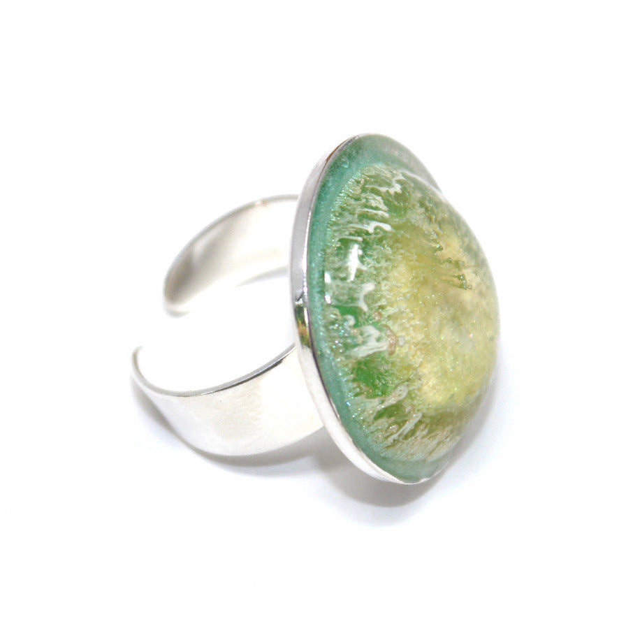 Bague Plaqué Argent Ajustable Nébuleuse Verte