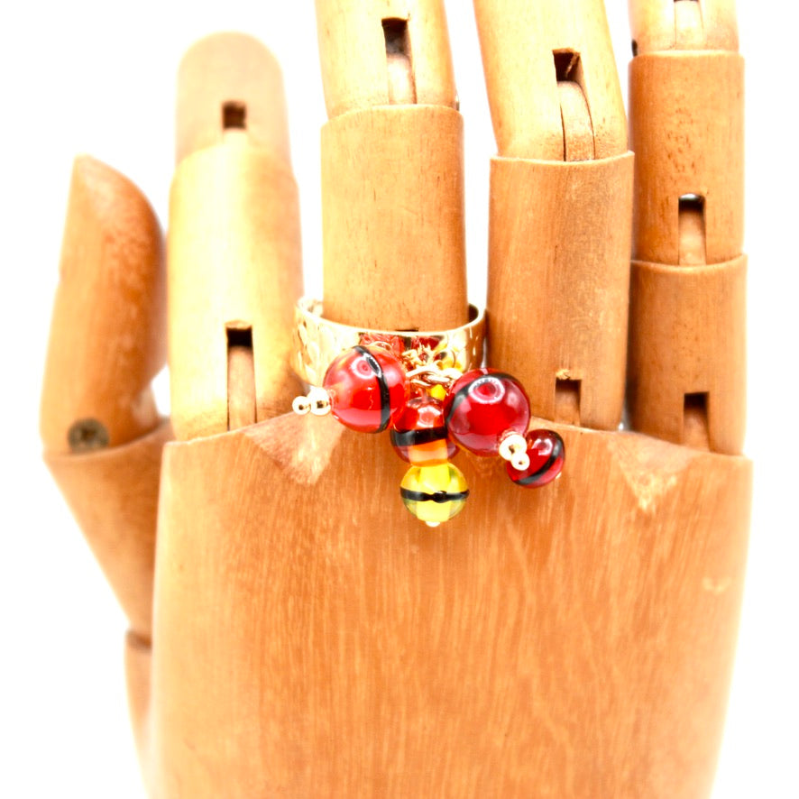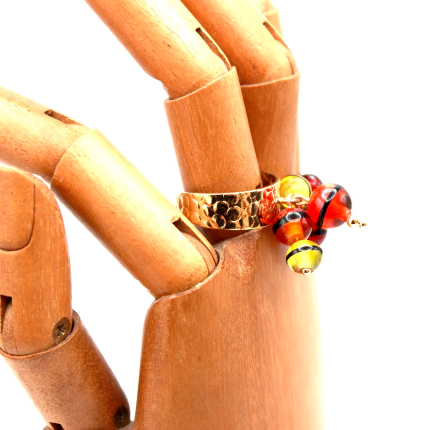Bague Dorée à l'or fin anneau martelé ajustable Murano Guirlande Multicolore