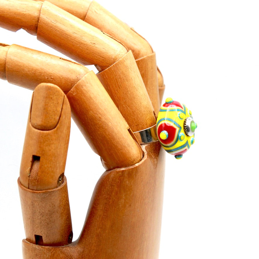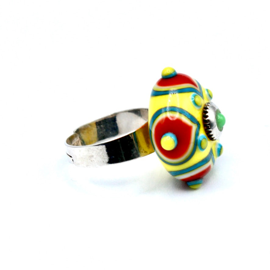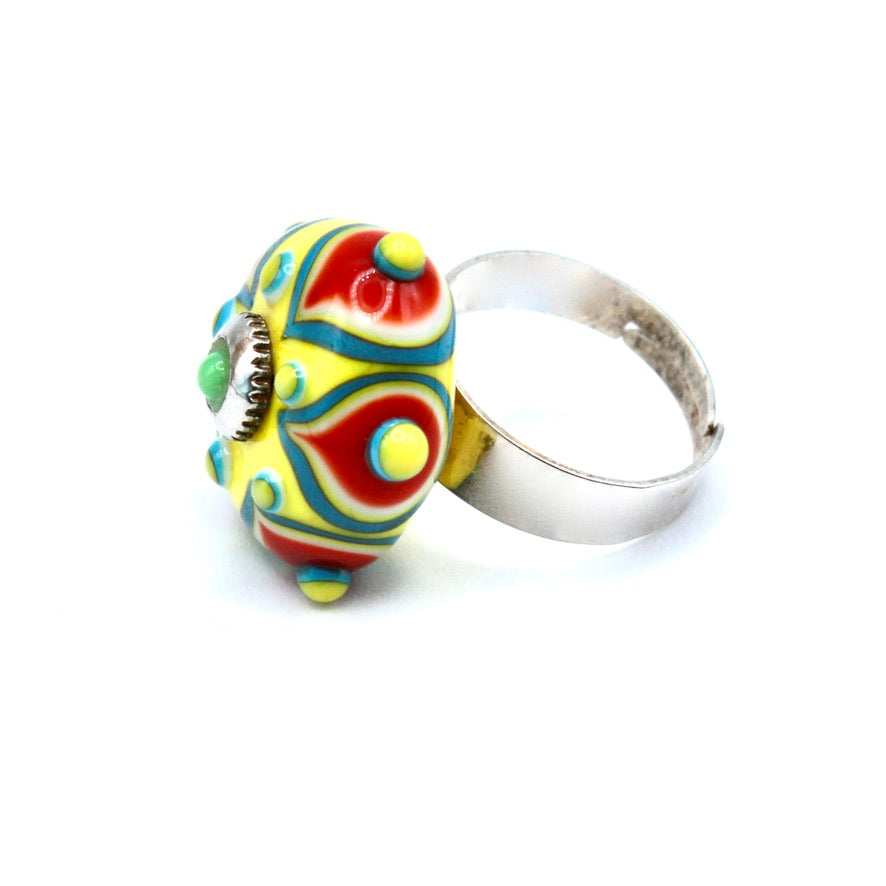 Bague en verre de Murano filé au chalumeau créée par Pasc@l le perlier d'art maison aux reflets lumineux pour une destination rêvée en toute liberté.