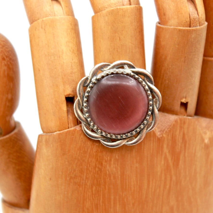 Bague ronde ajustable cabochon bombé en verre œil de chat