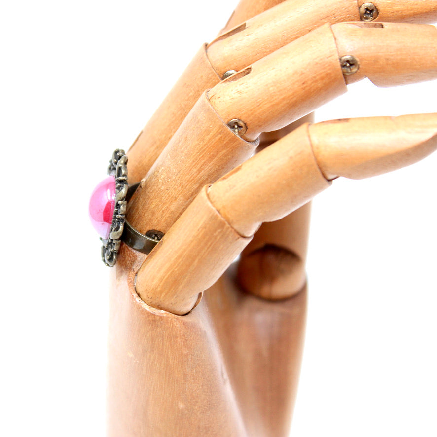 Bague Réglable Ronde Myrta Cabochon Uni vers l'Uni rose