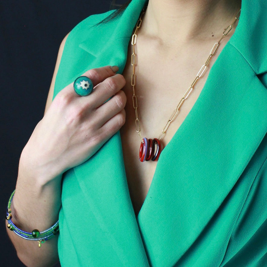 Bague en verre de Murano filé au chalumeau créée par Pasc@l le perlier d'art maison aux reflets de l'écume de la mer pour une destination Grand large en toute liberté.