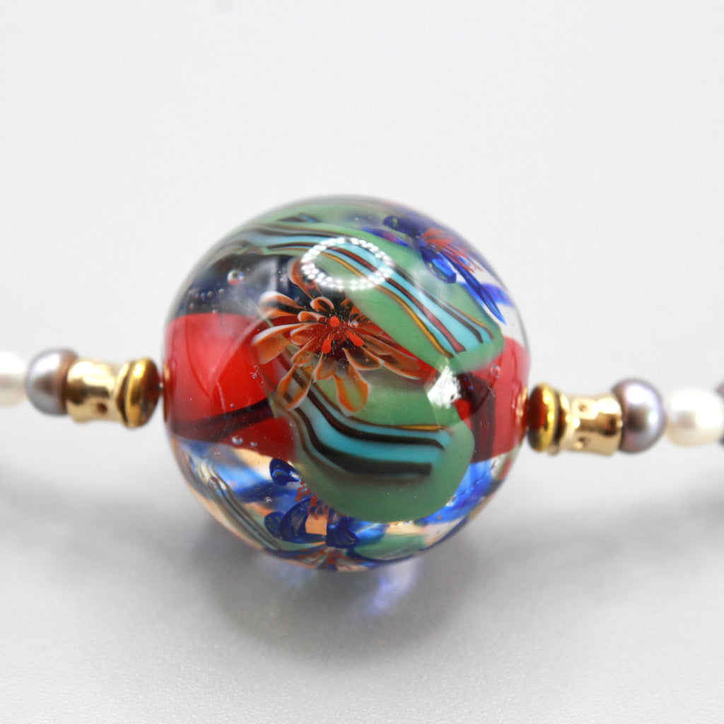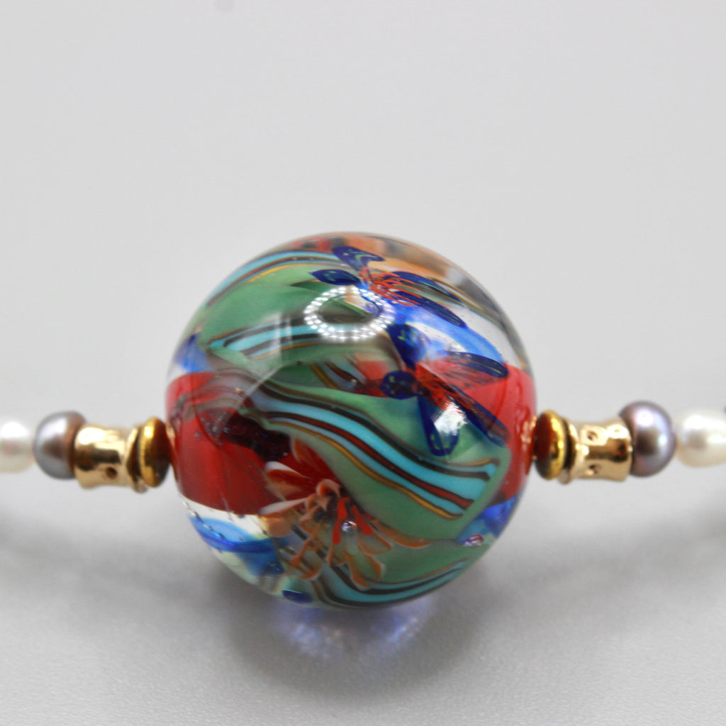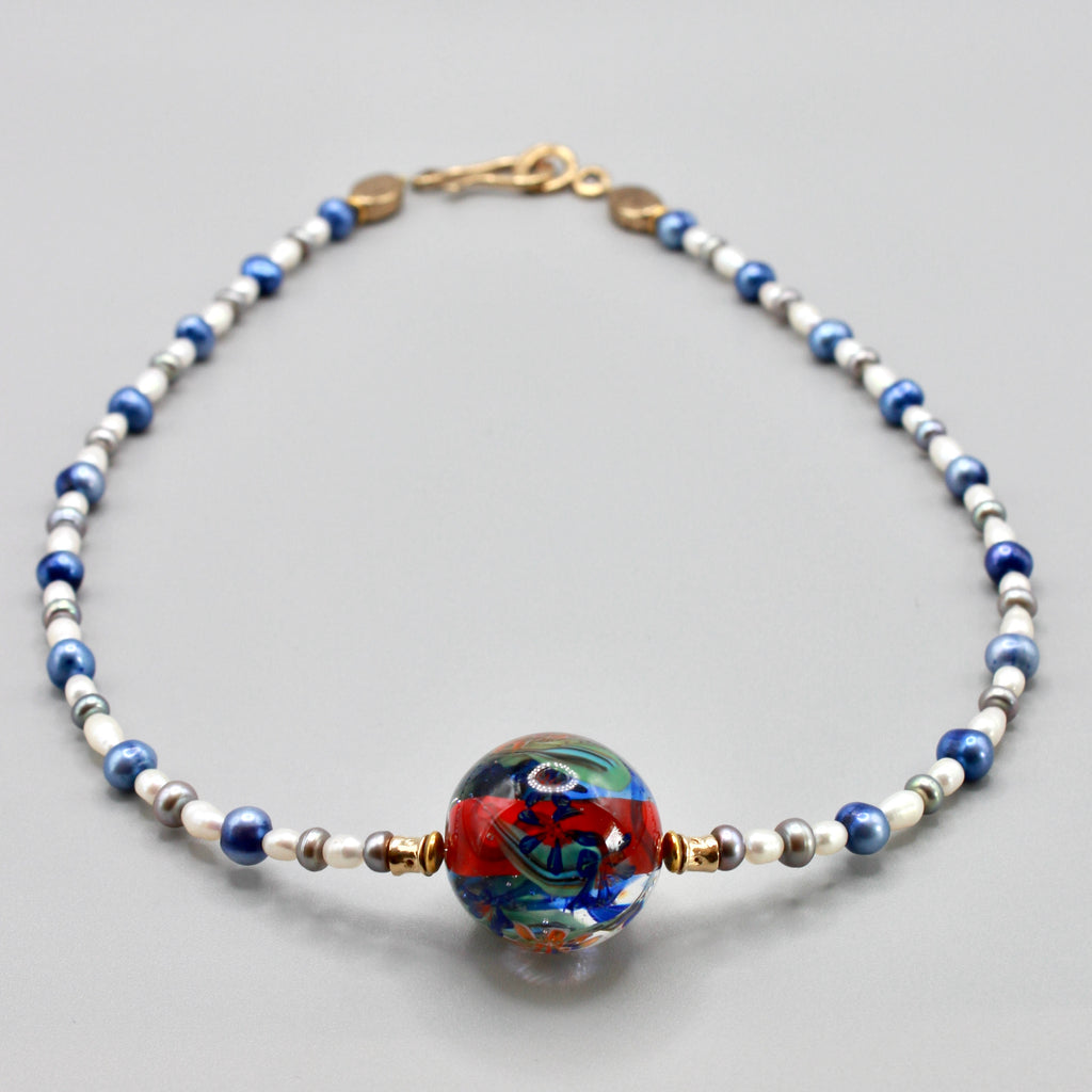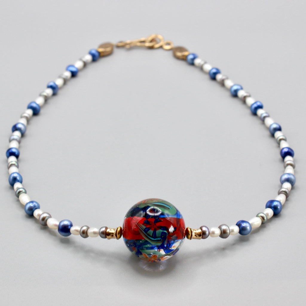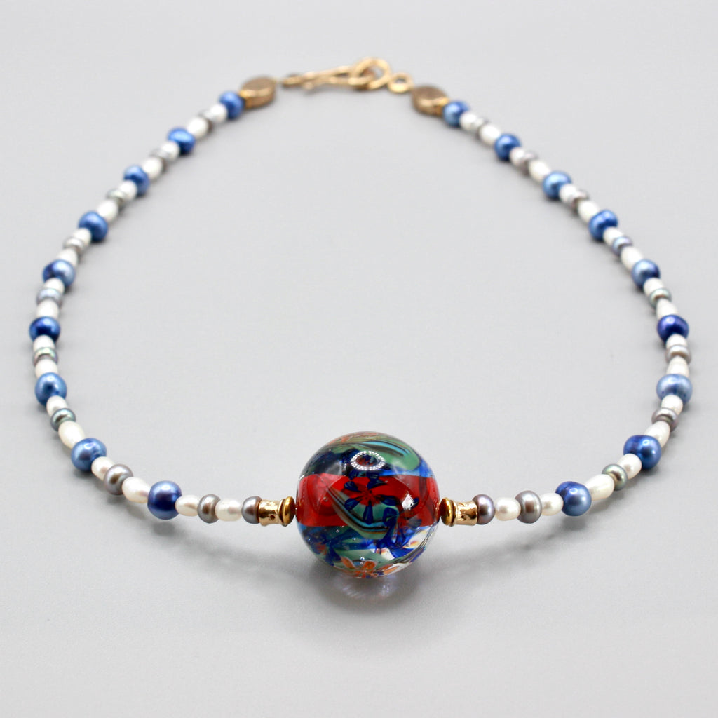 Collier ras de cou Perles d'art filé à la flamme en verre de Murano