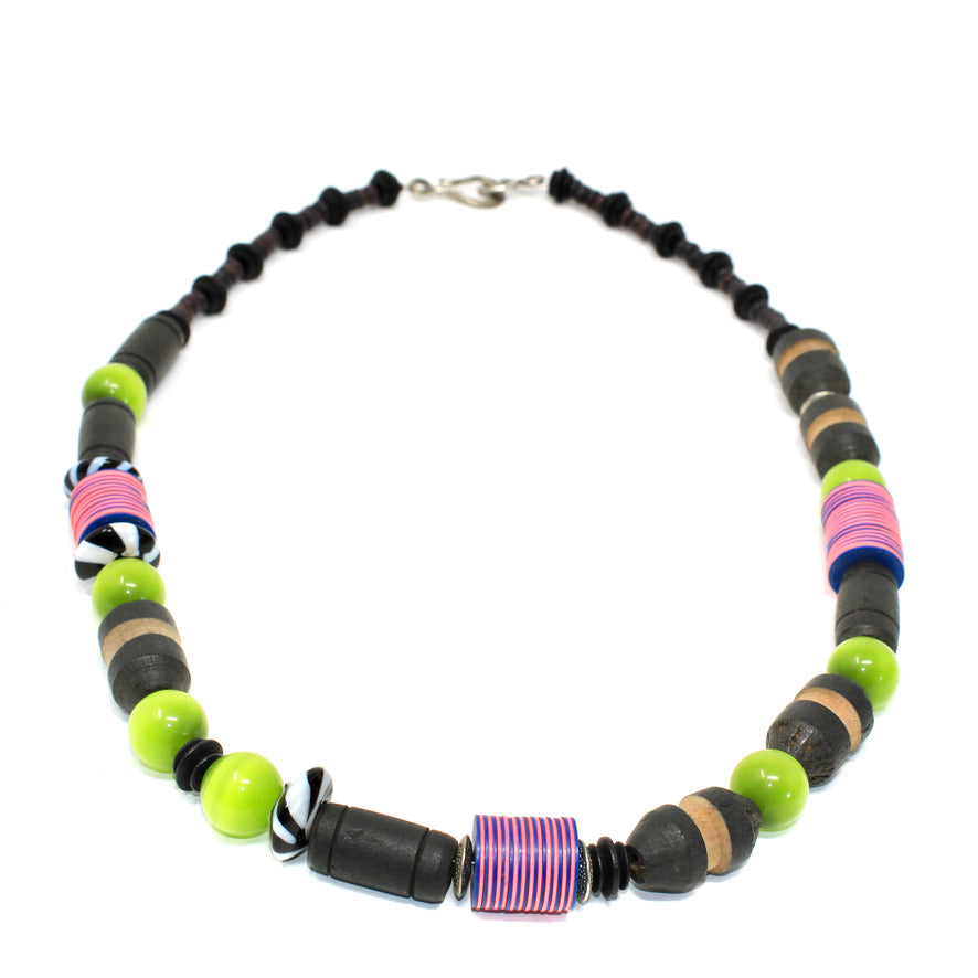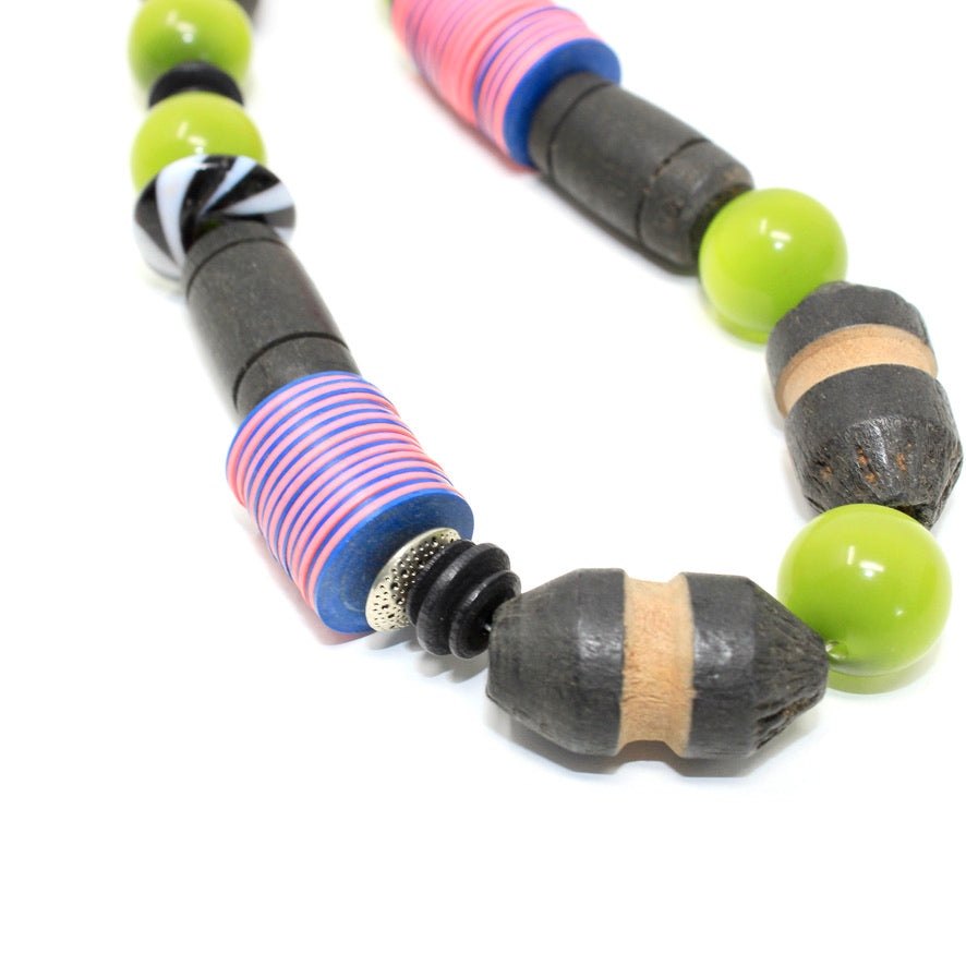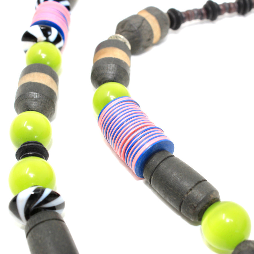Collier mi-long asymétrique Heishis Wood Green Stampi