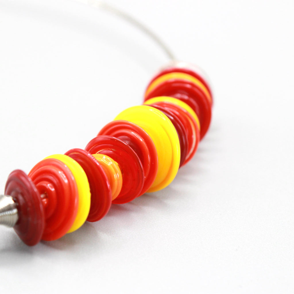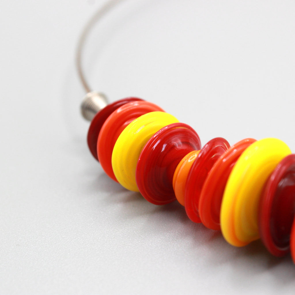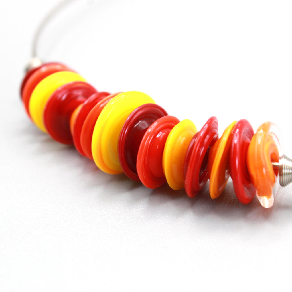 Perles disques jaune, rouge et orange de différentes nuances en verre de Murano maison filé à la flamme