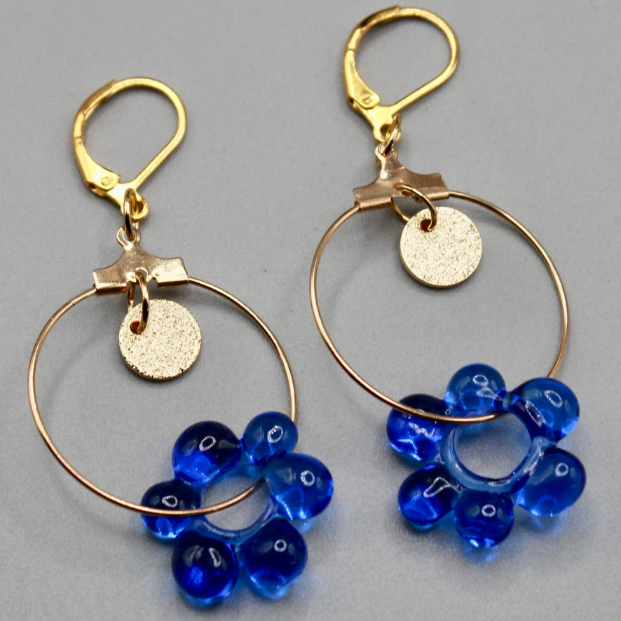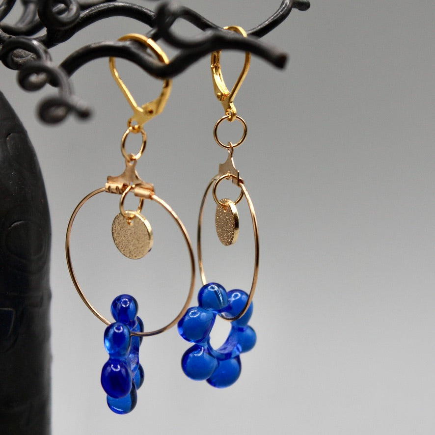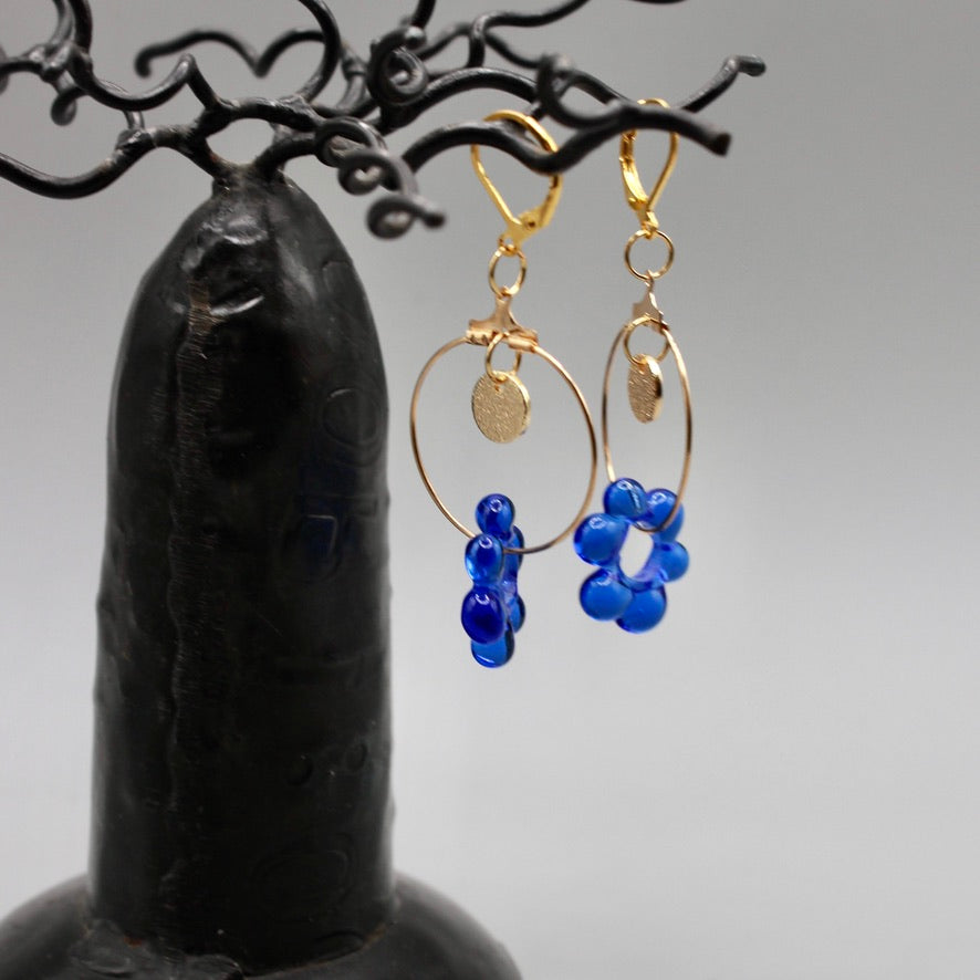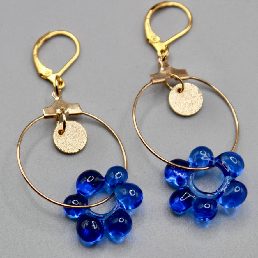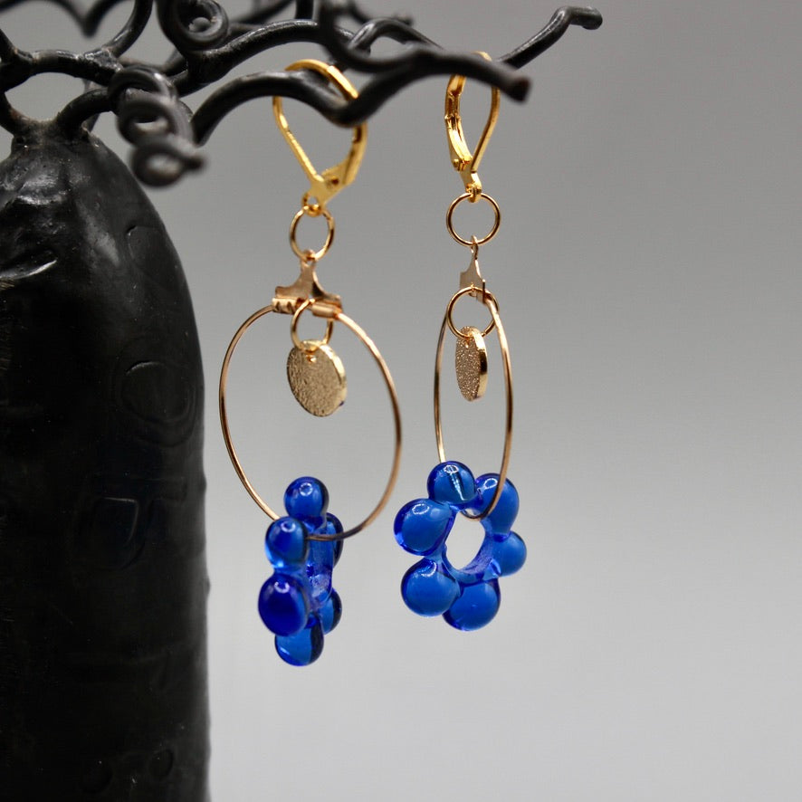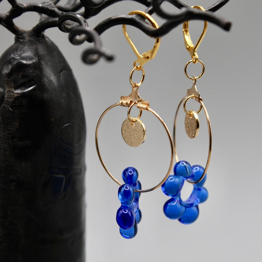 Fleurs Boucles dorées à l'or fin Murano Bleu Roy