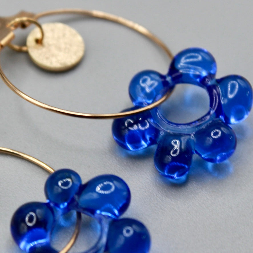 Margerita Fleurs Boucles dorées à l'or fin Murano Bleu Roy