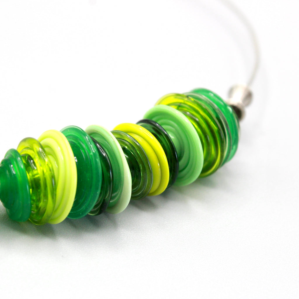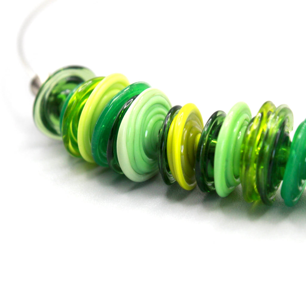 Perles disques verts de différentes nuances en verre de Murano maison filé à la flamme