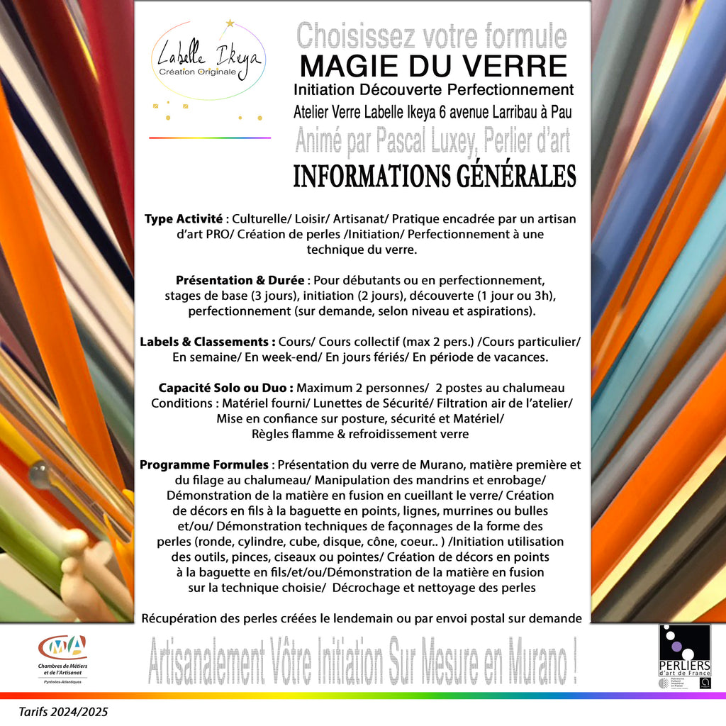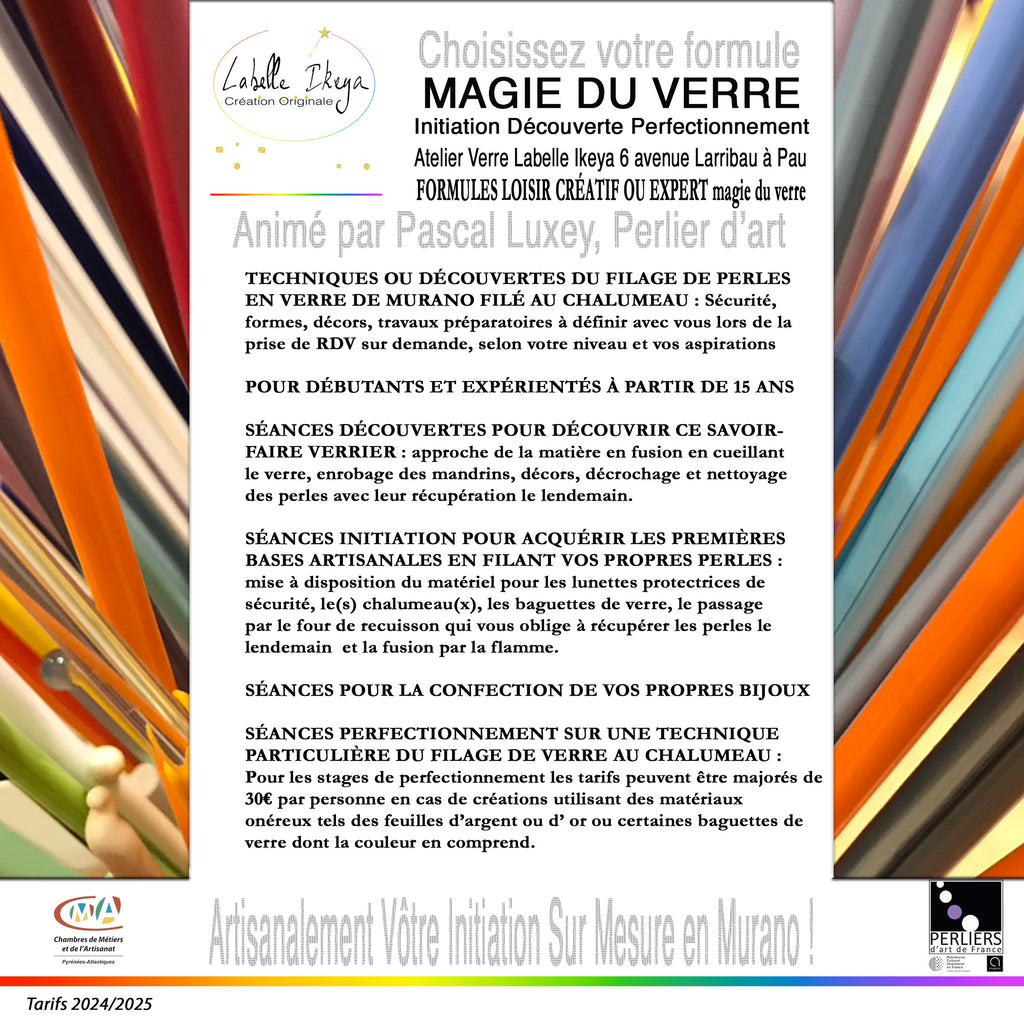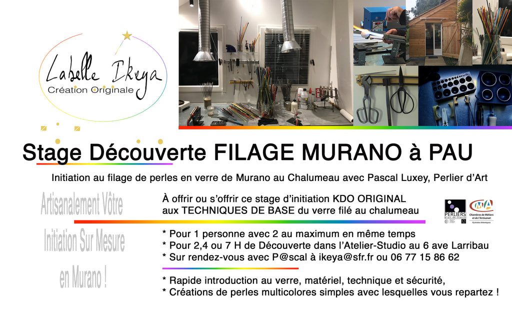 Dans l’atelier envoûtant de Pascal Luxey, perlier d’art chez Labelle Ikeya au 6 avenue Larribau à Pau, une aventure sans pareil attend ceux qui osent s’y immerger pour deux jours intenses de perfectionnement ou d'initiation du verre de Murano.