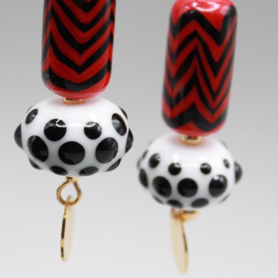 Perles rondes blanches rehaussées avec pois noir en verre de Murano filé au chalumeau par P@scal le perlier d'art maison (2)