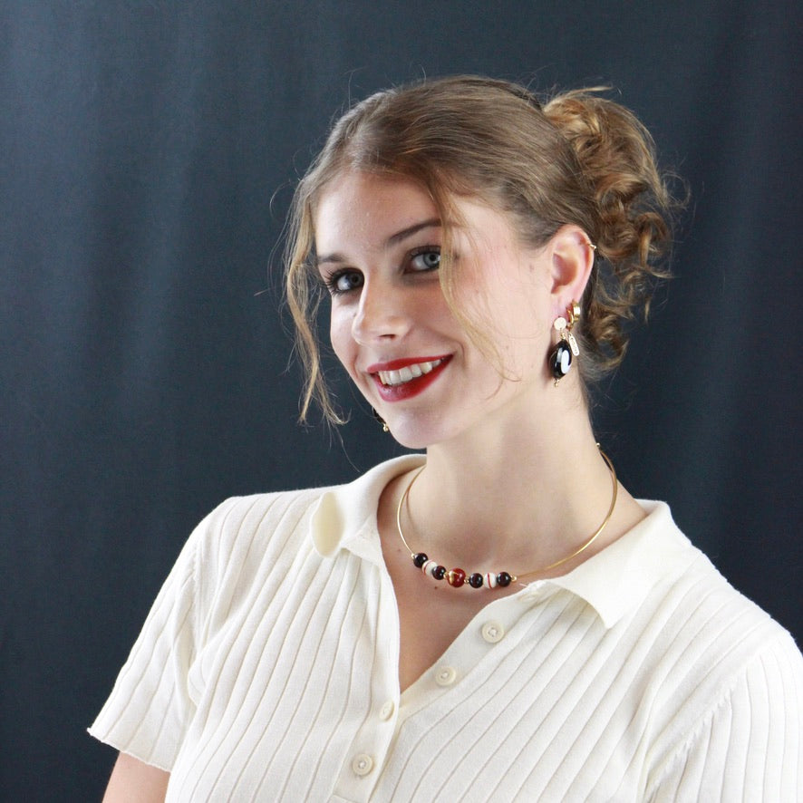 Inspirée de l'univers musical, cette collection capture l'énergie du bon tempo entraînant et l'audace du pop, avec des contrastes saisissants entre le noir profond et le blanc éclatant avec une touche de rouge passion ou de multicolore pour accentuer les nuances subtiles de l'orchestration du bijou créé ....