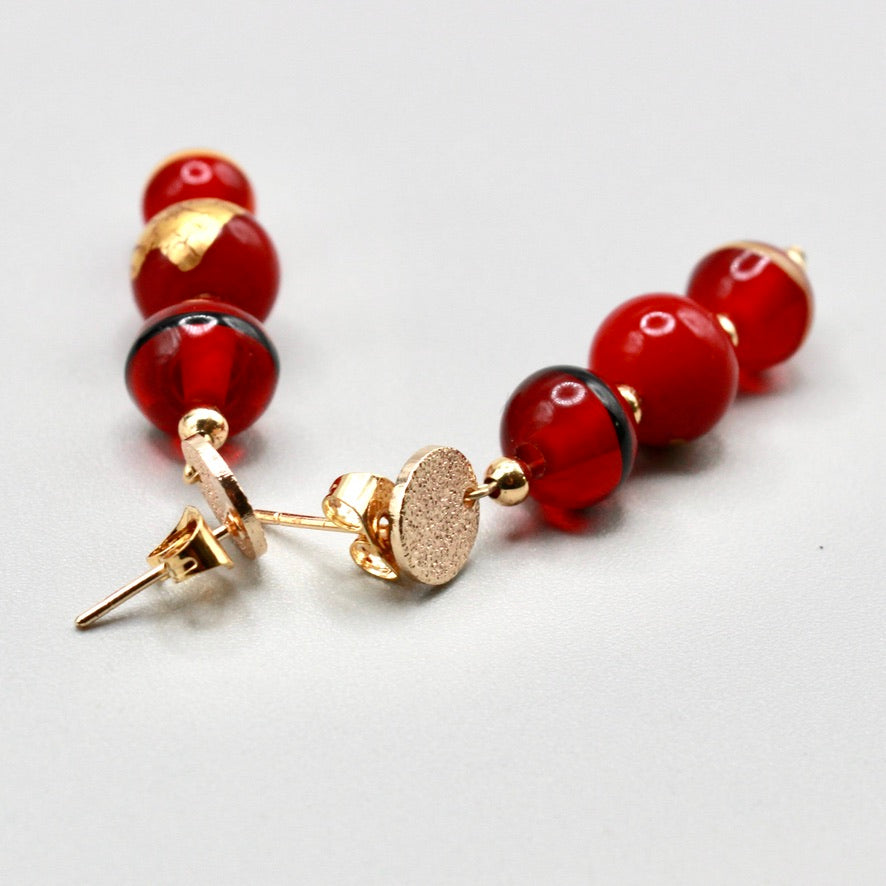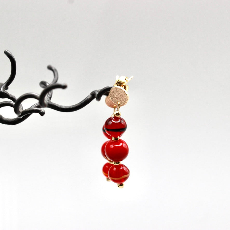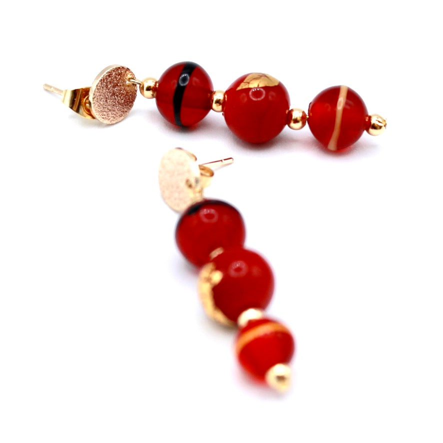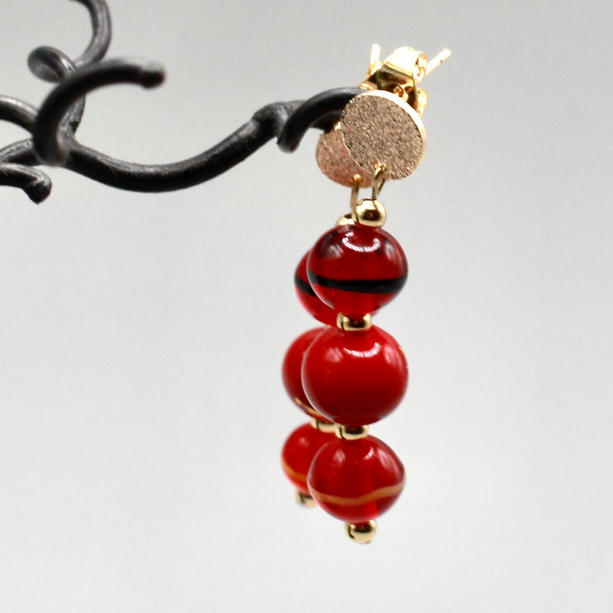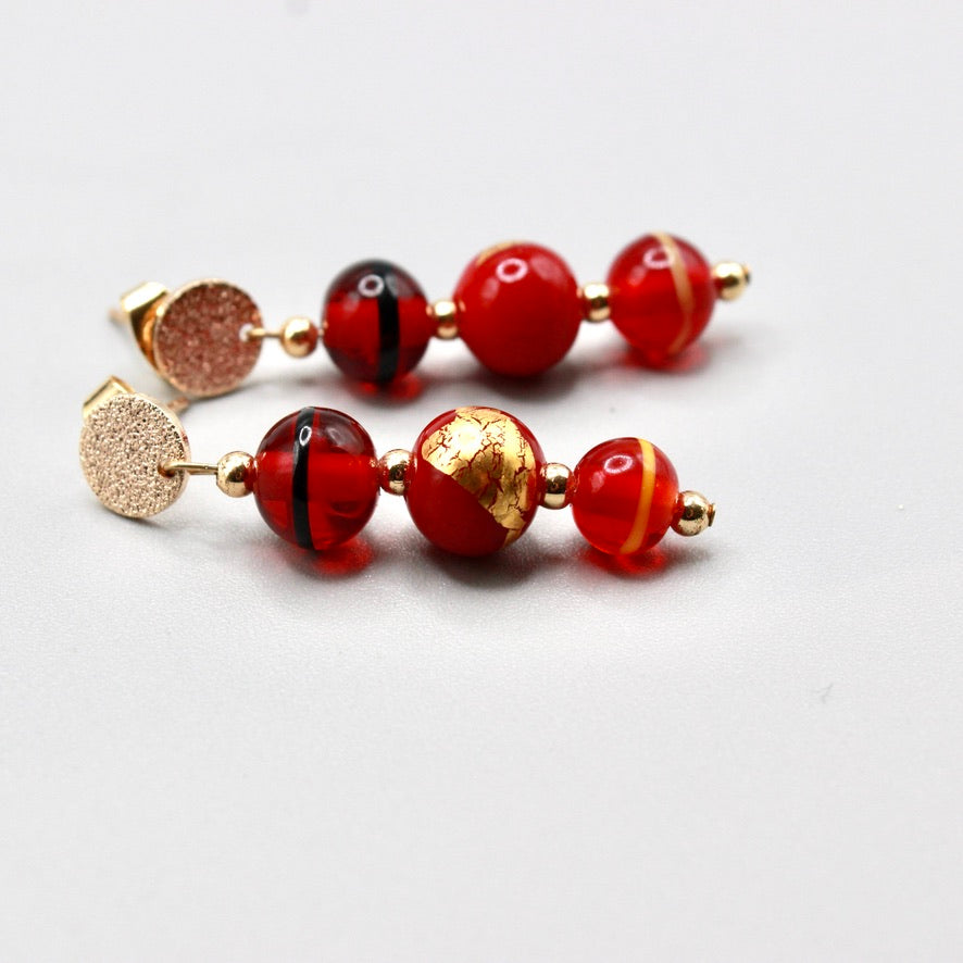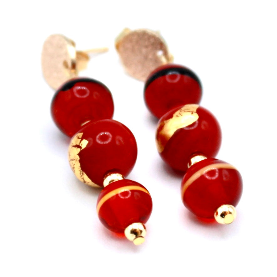 Boucles puces dorées à l'or fin Murano Rouge Alice