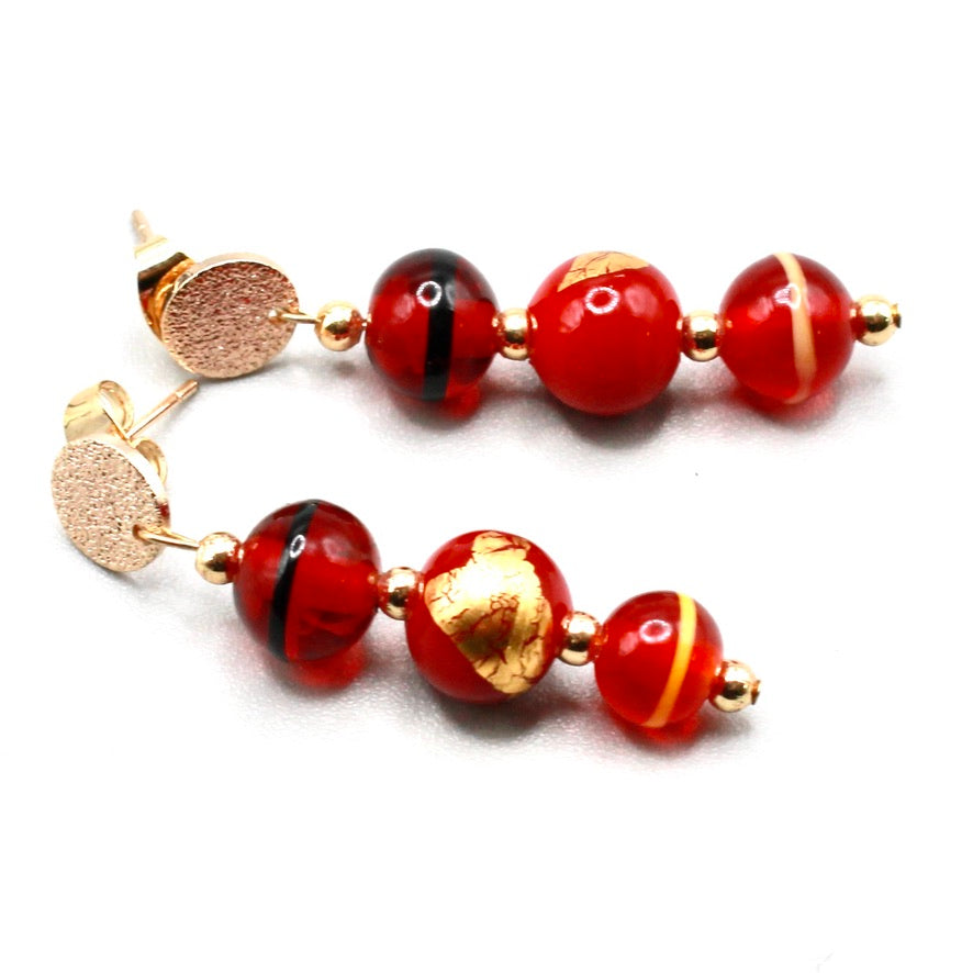 Boucles puces dorées à l'or fin Murano Dormeuses Rouge Alice