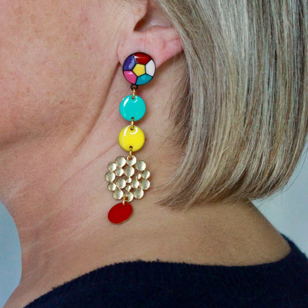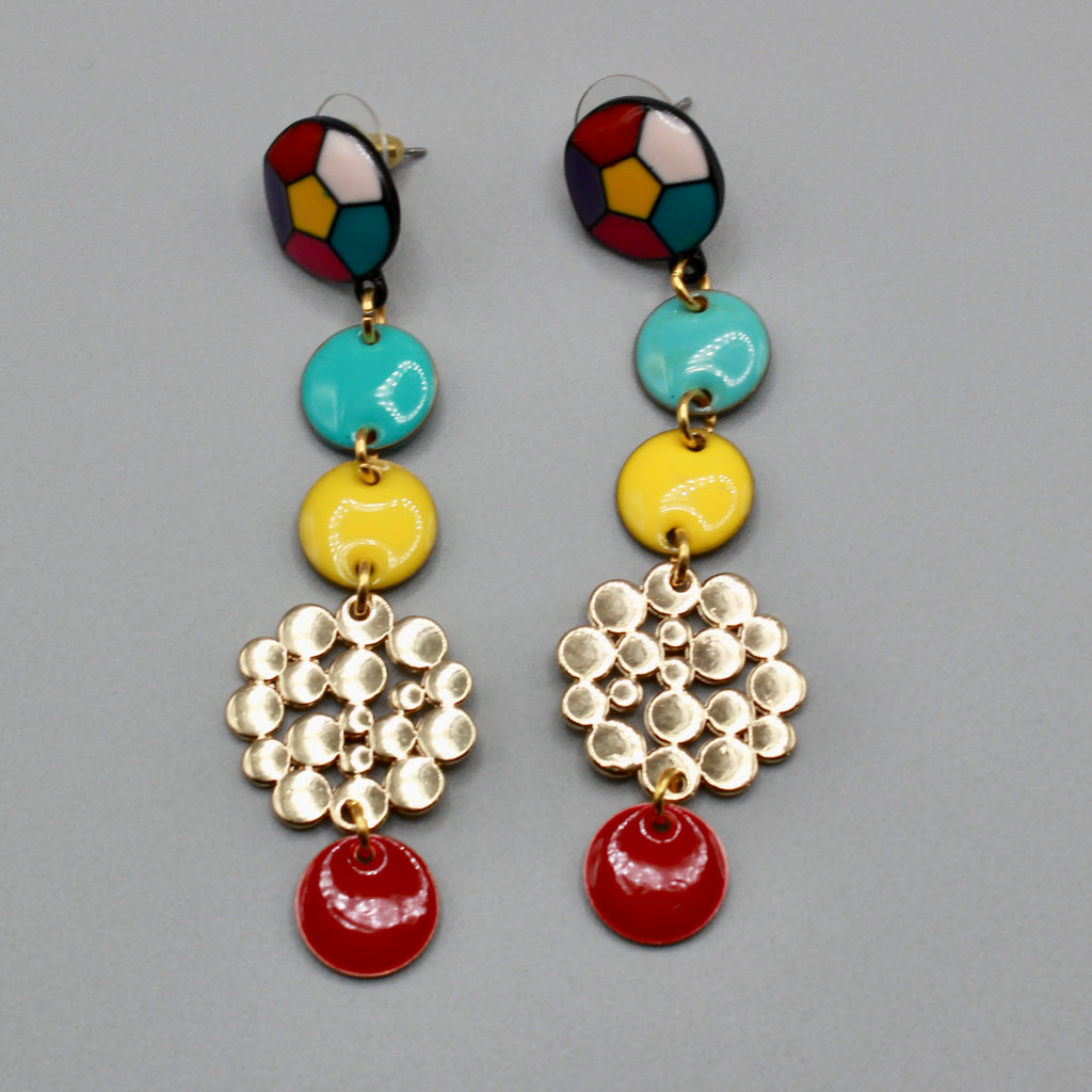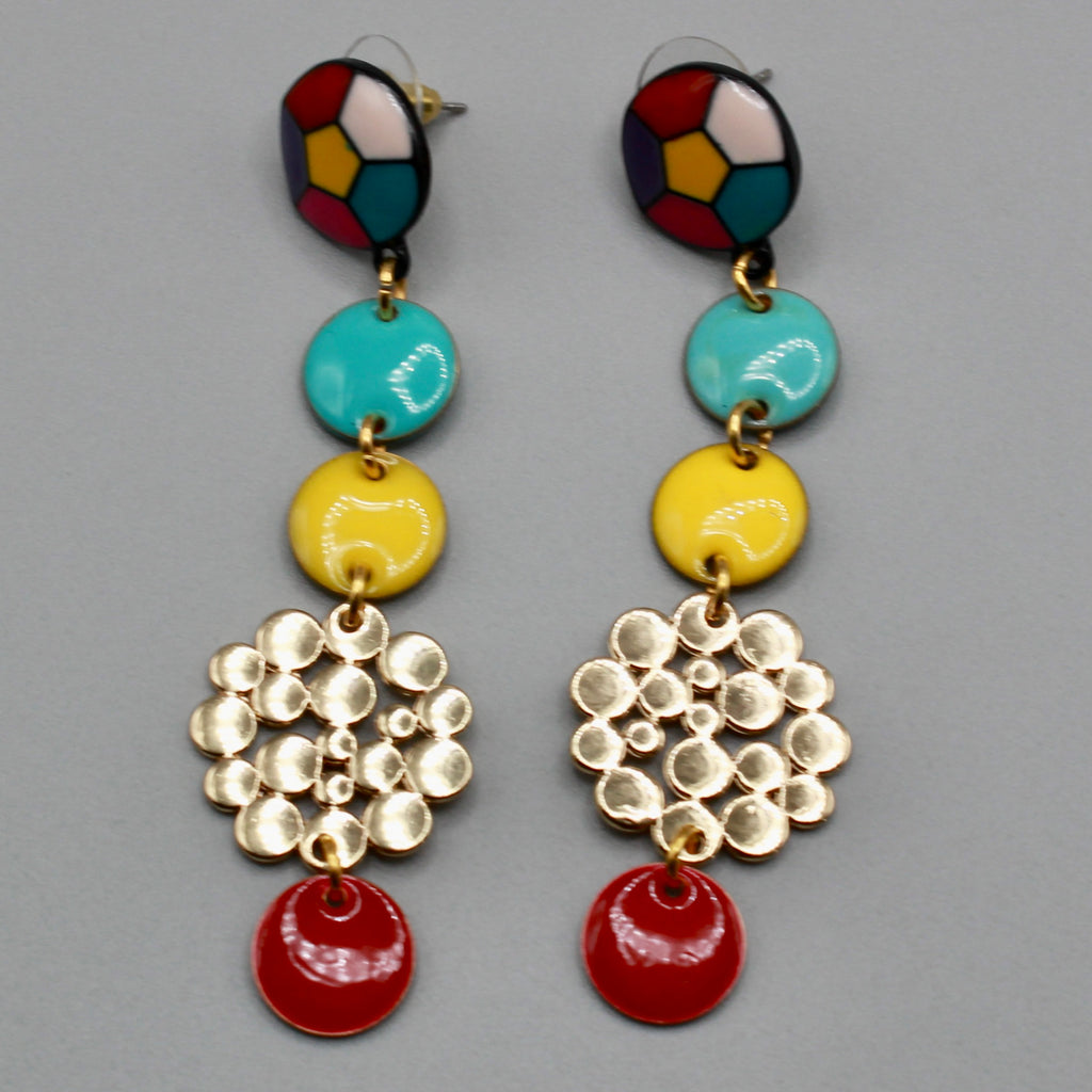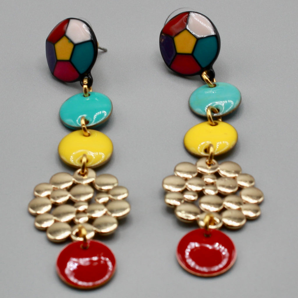 Boucles d'oreilles pendantes Émaux Alvira Arlequin