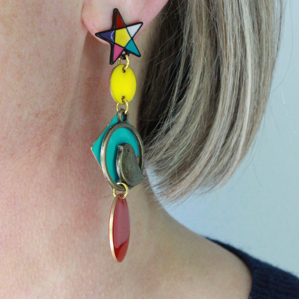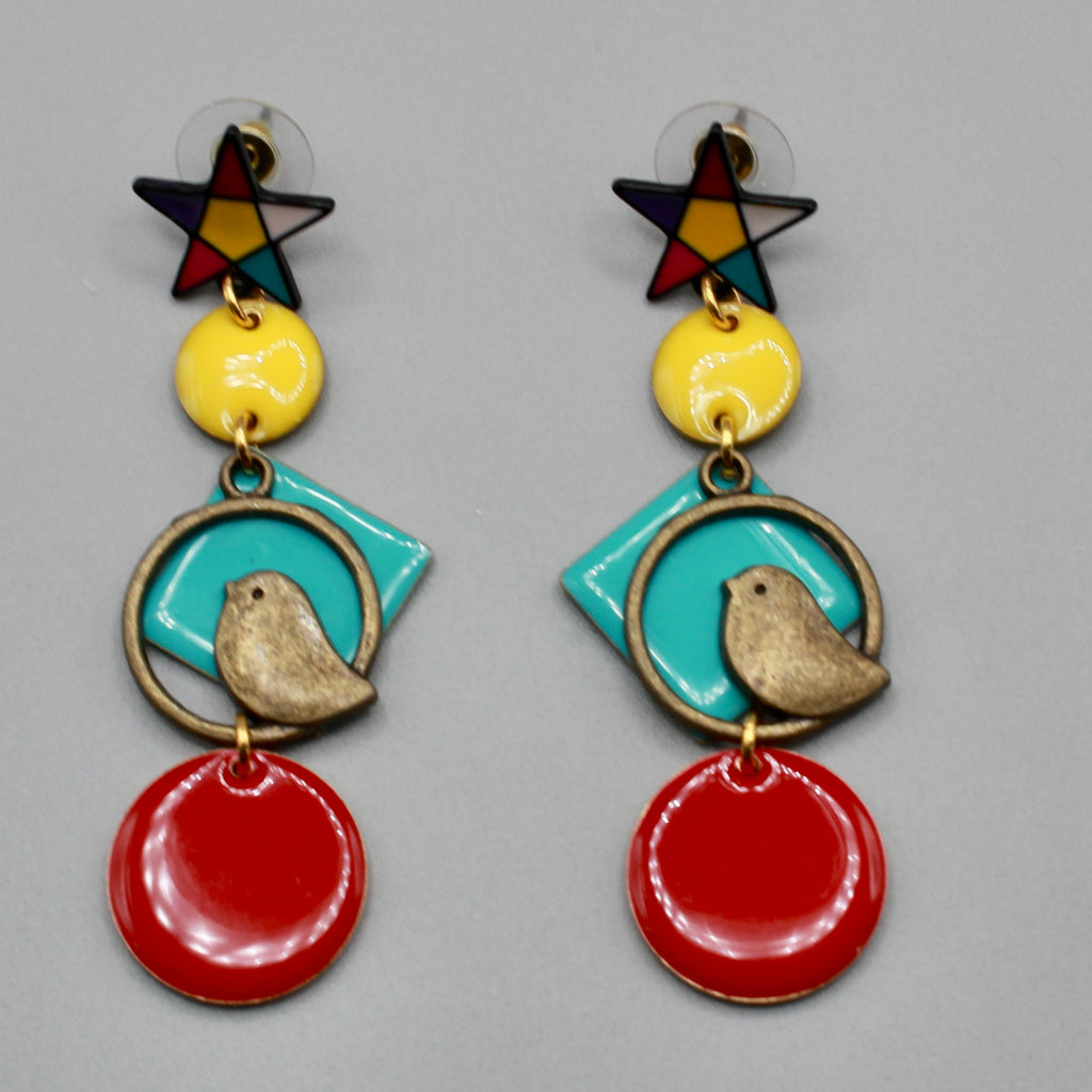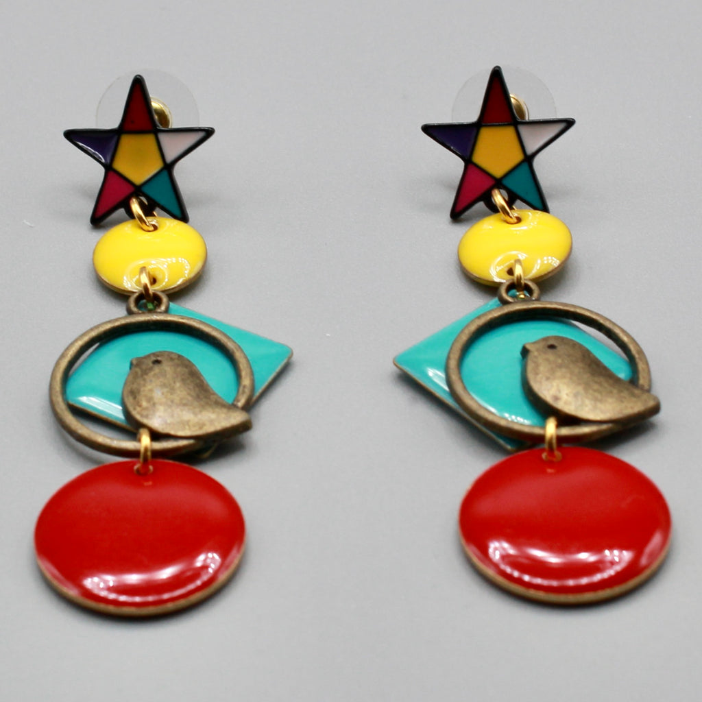 Boucles d'oreilles pendantes Émaux Aziza Arlequin