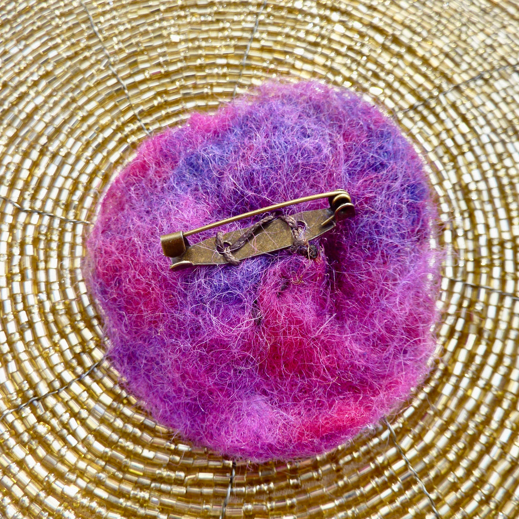 Pièce ronde de laine feutrée violette et rose fuchsia