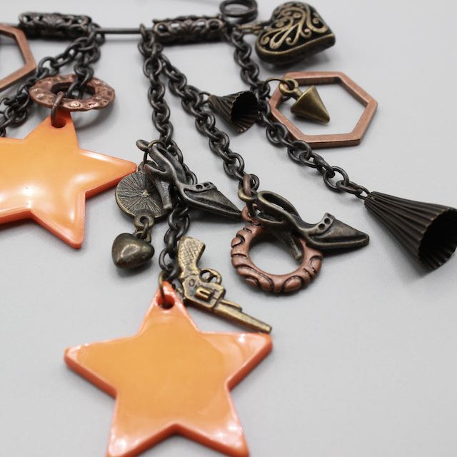 Breloques chaussures, gouttes, cabochons pointus, cœurs, pistolets etc ... en métal mixte couleur bronze & cuivre