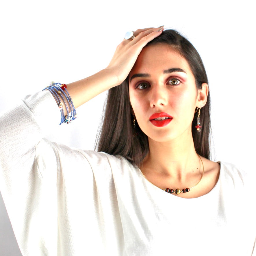 Collection Pépites de bijoux dorés à l'or fin autour de Perles en verre de Murano filé au chalumeau créées par Pasc@l le Perlier d'art maison dans notre atelier dédié et/ou couplées à des perles précieuses ou semi-précieuses naturelles !