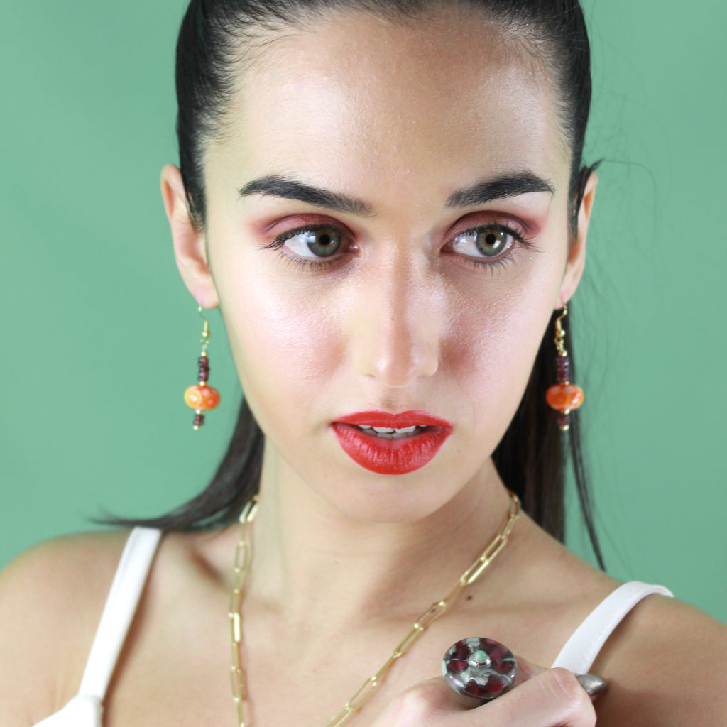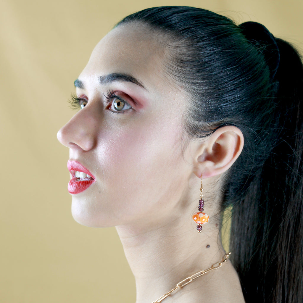 Boucles Pendantes & Paire Pépites Murano Grenat Rhodolite Heishi