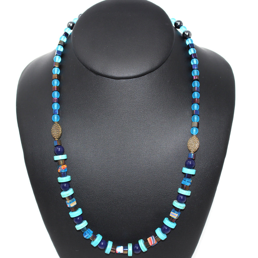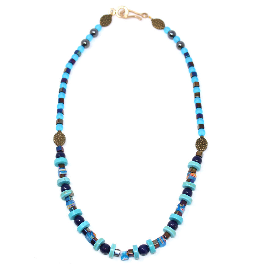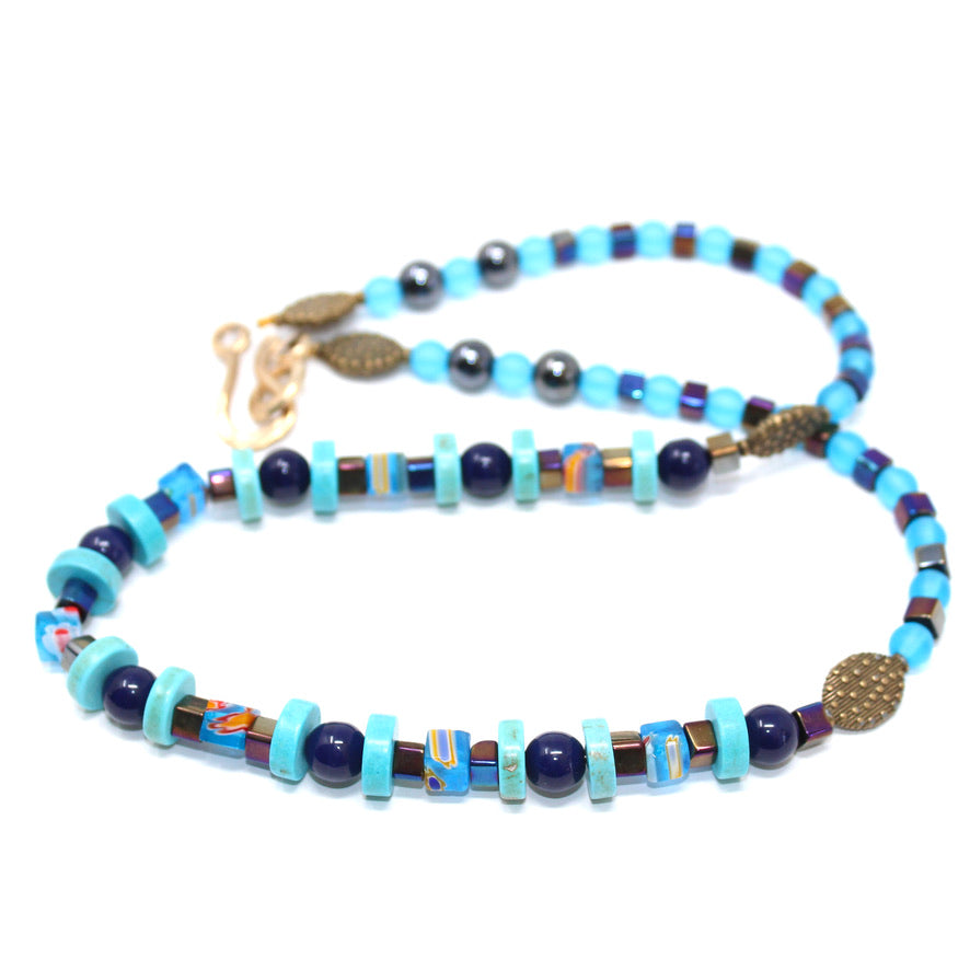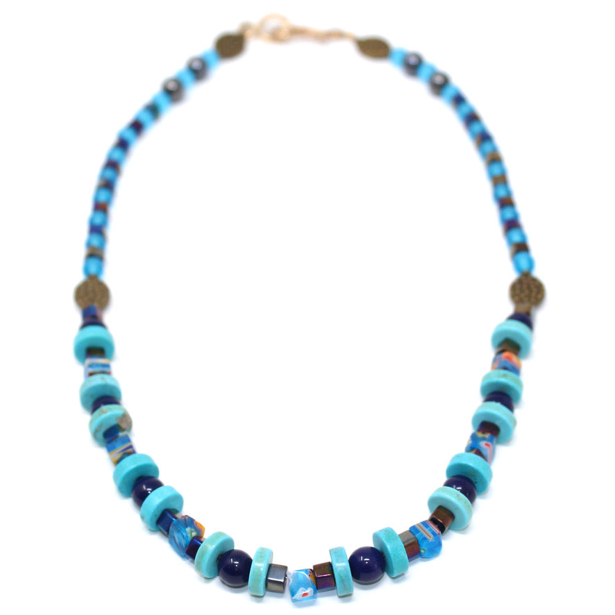 Katyal Collier Agate, howlite Turquoise et Verre