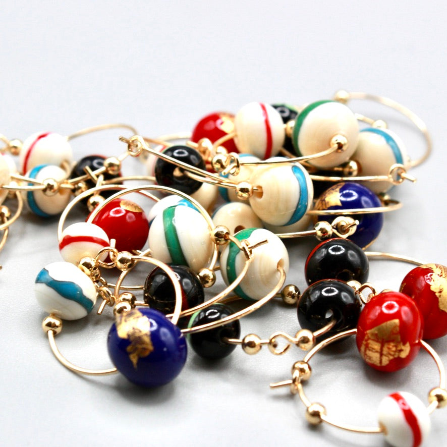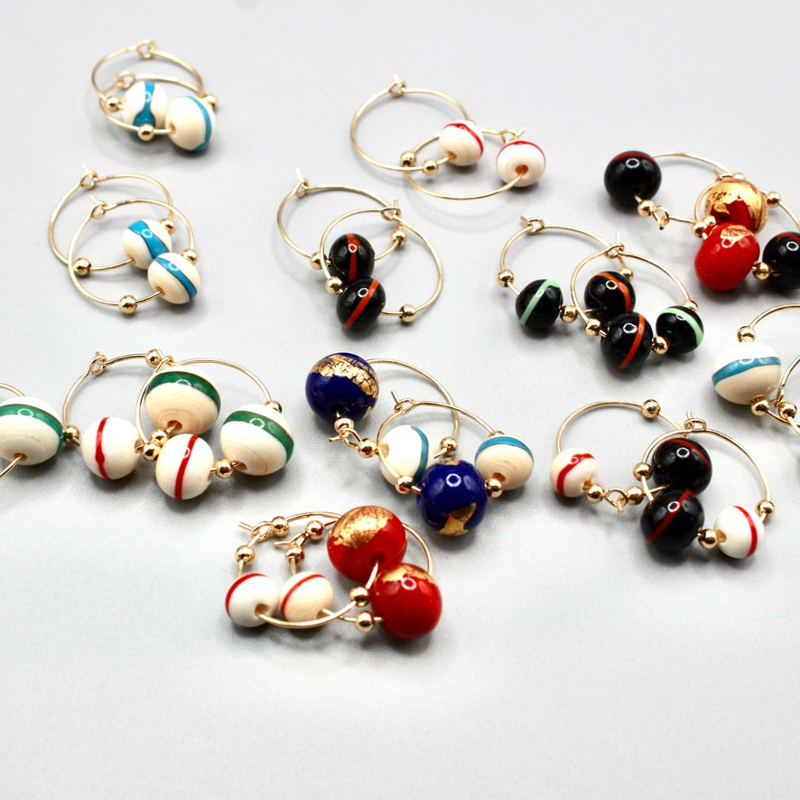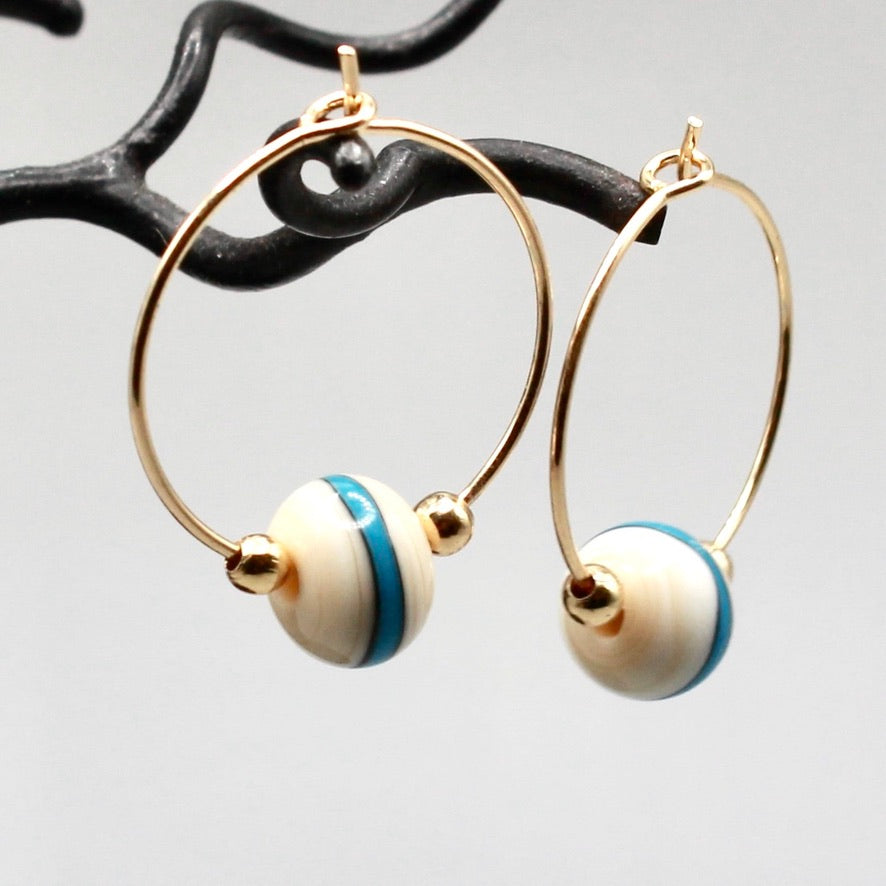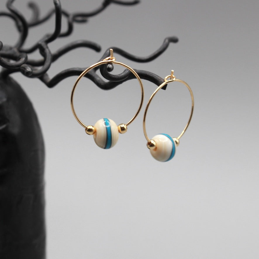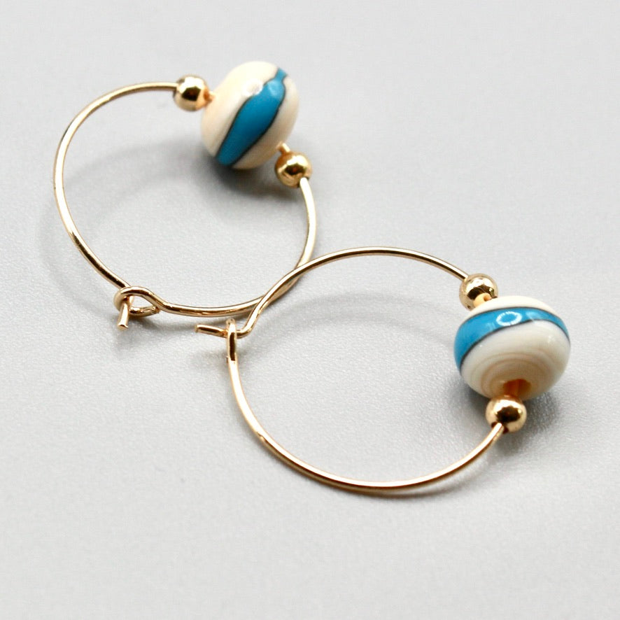 Boucles dorées à l'or fin Murano Mini Creoles Blanc & Bleu Azur – Labelle Ikeya Création Originale