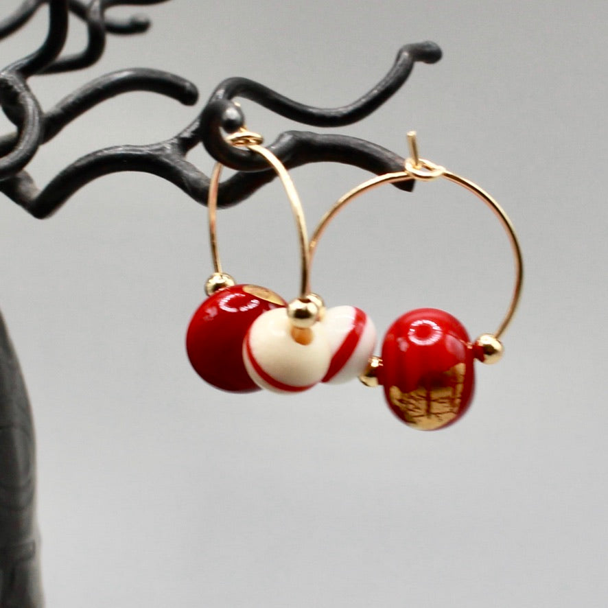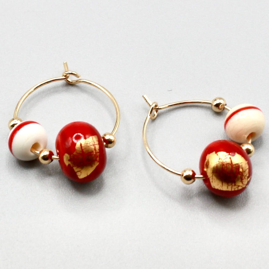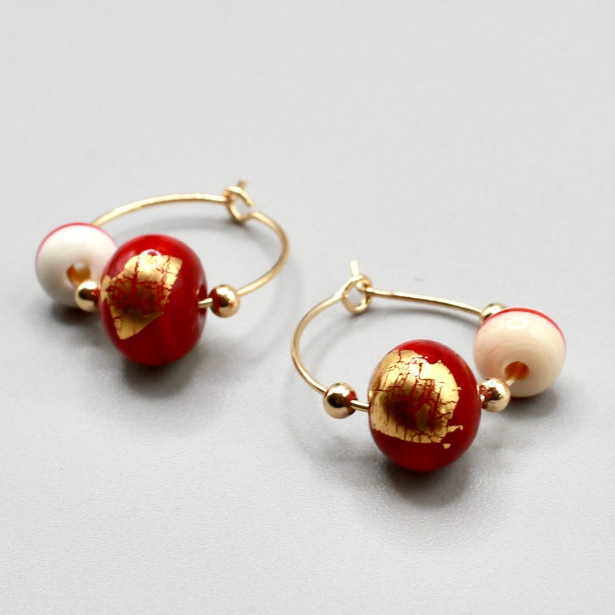 Boucles dorees à l'or fin Murano Petites Creoles Duo Or Blanc & Rouge