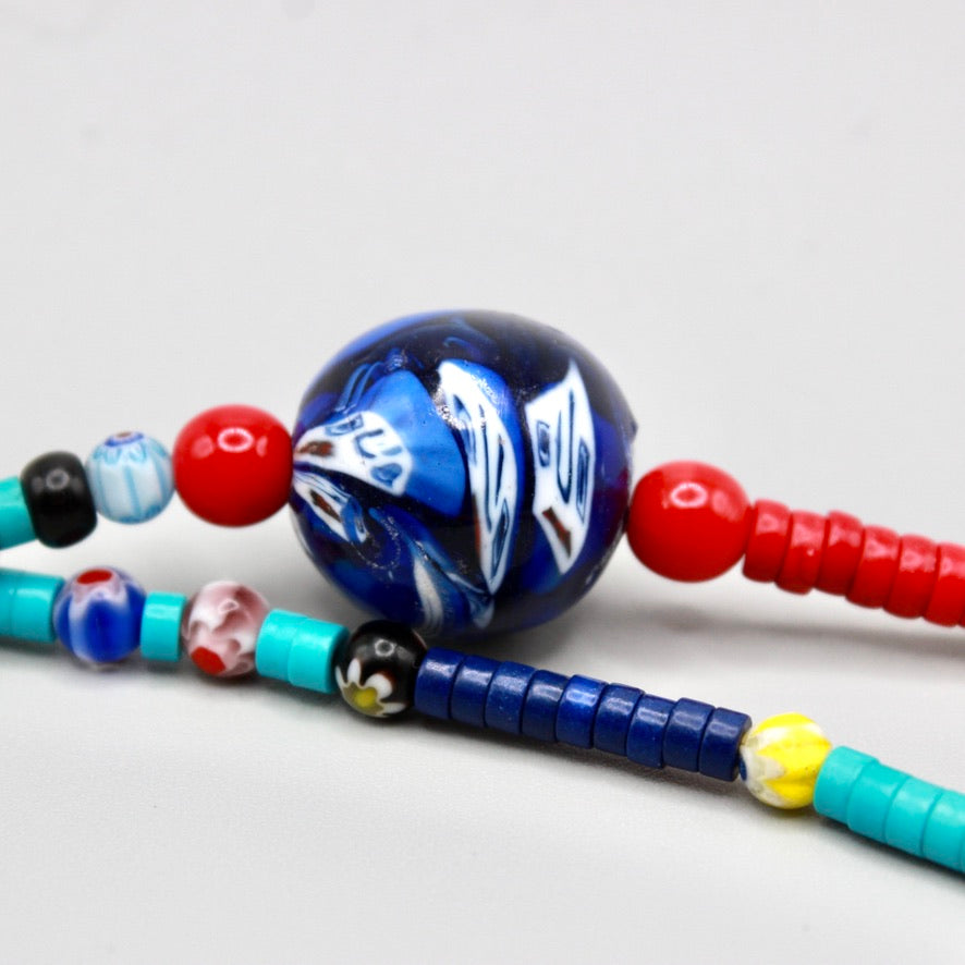 Perles rondes africaines en verre rocaille striée bleue et blanche