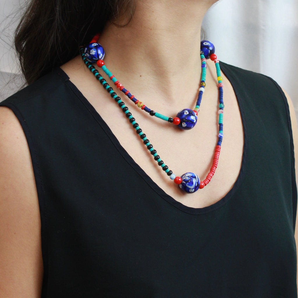 Particularité de ce collier est qu'il peut se porter en sautoir ou en double rang autour du cou, c'est le collier deux en un que vous portez comme vous voulez !