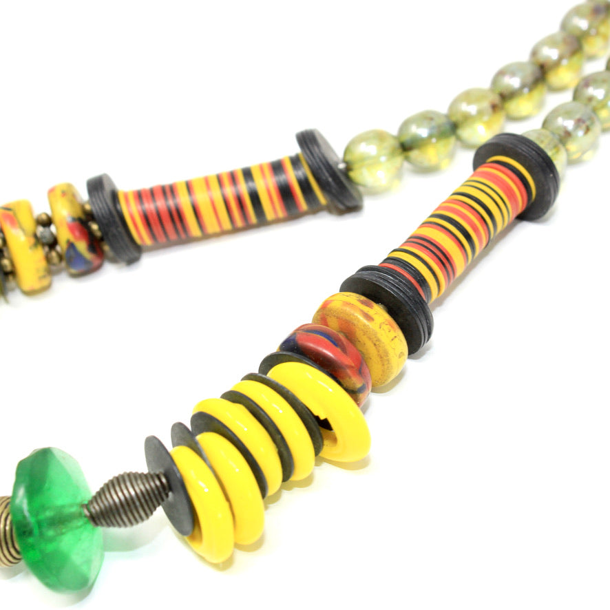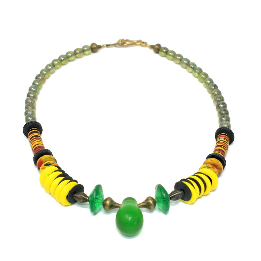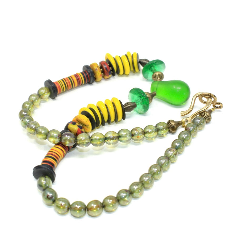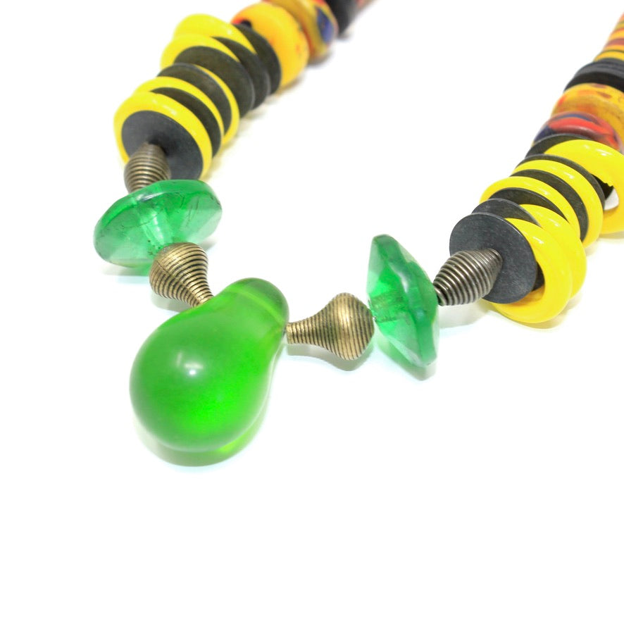 Perles en verre d'Afrique de forme goutte verte et disque en verre