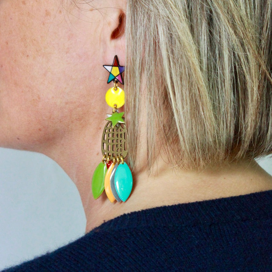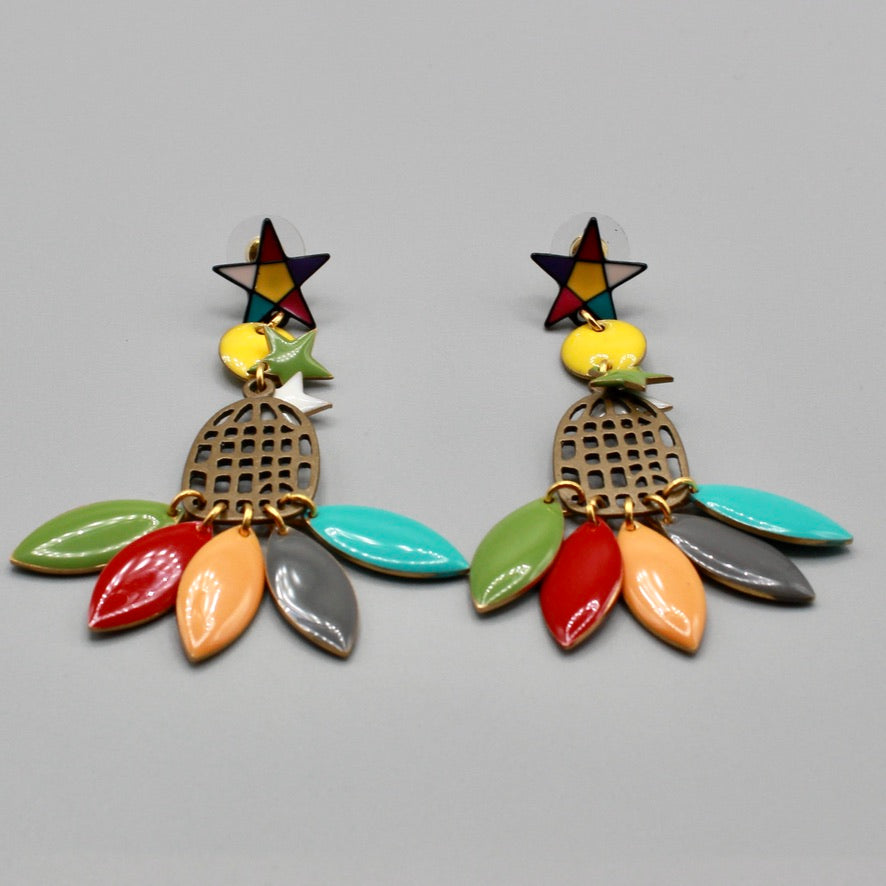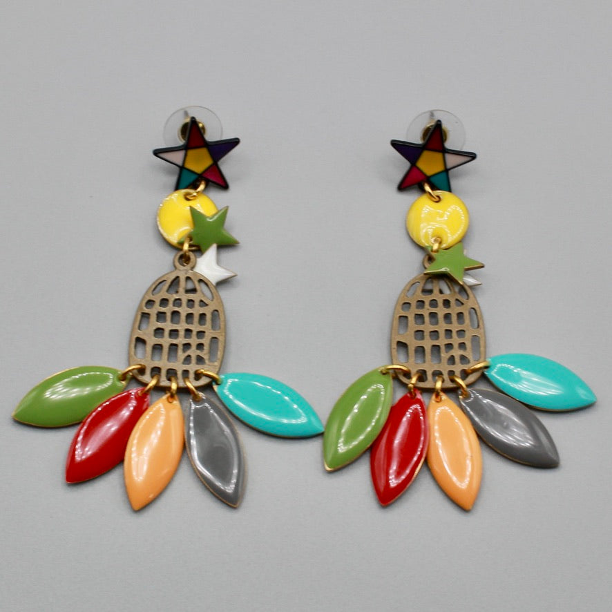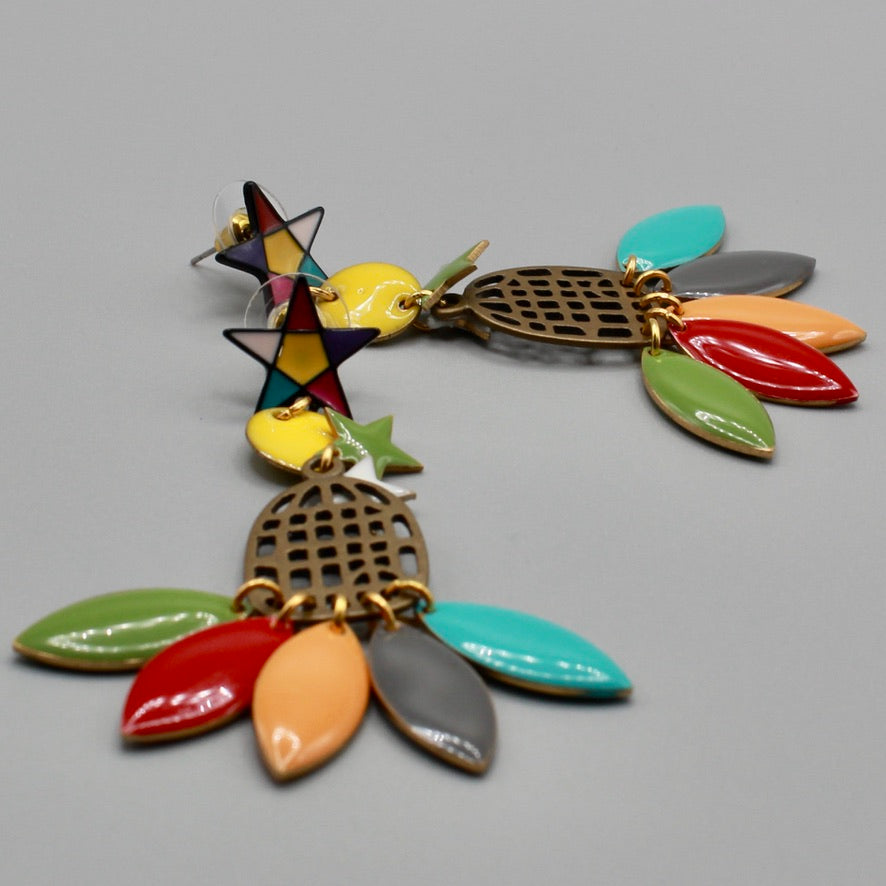 Boucles d'oreilles pendantes Émaux Anouchk Arlequin