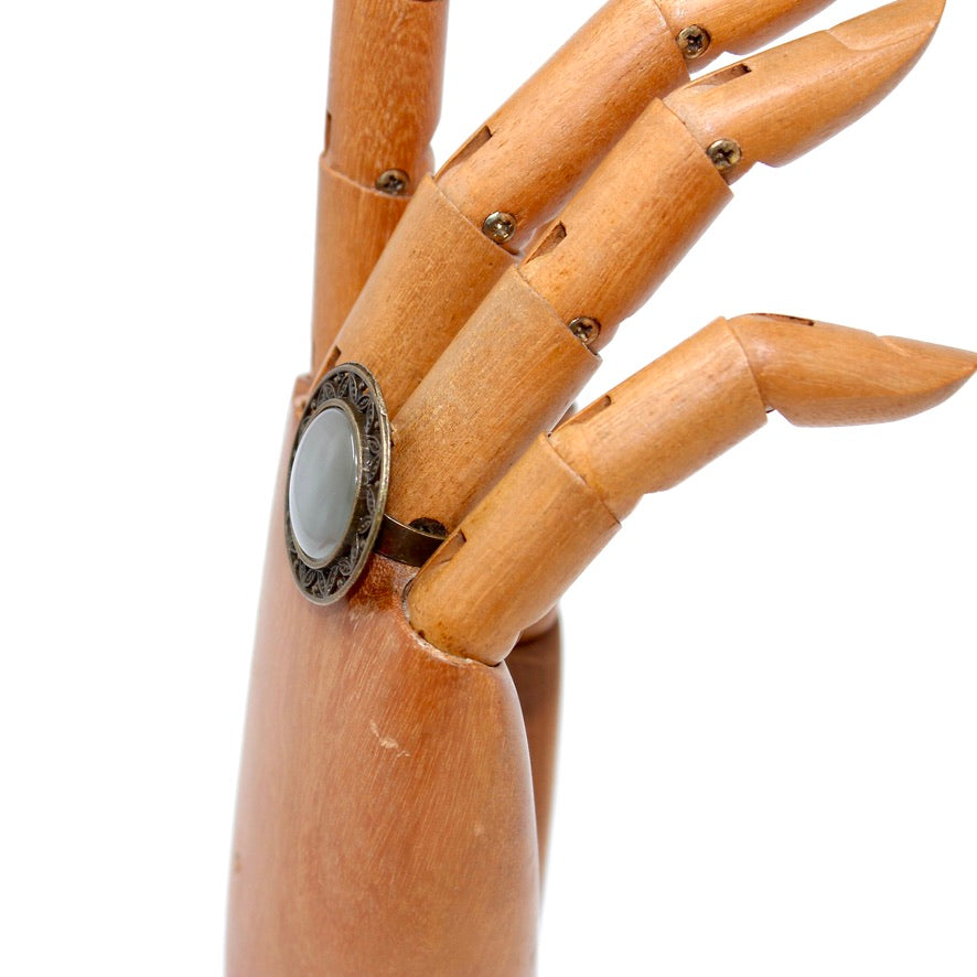 Bague ronde ajustable cabochon bombé en verre œil de chat