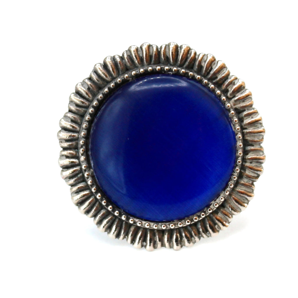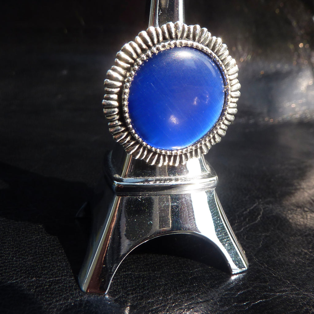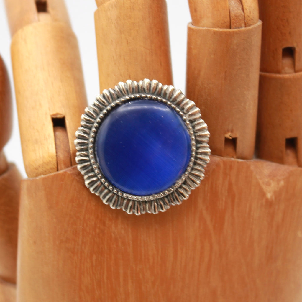 Bague Réglable Ronde Cabochon en Verre Œil de Chat Bleu Roy