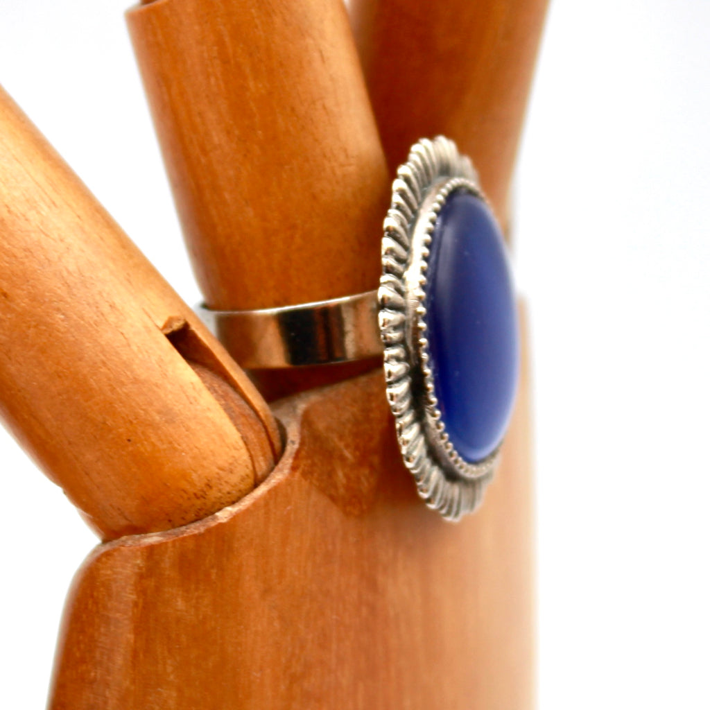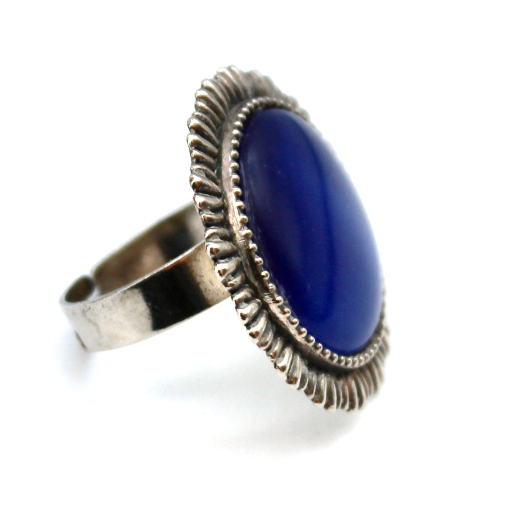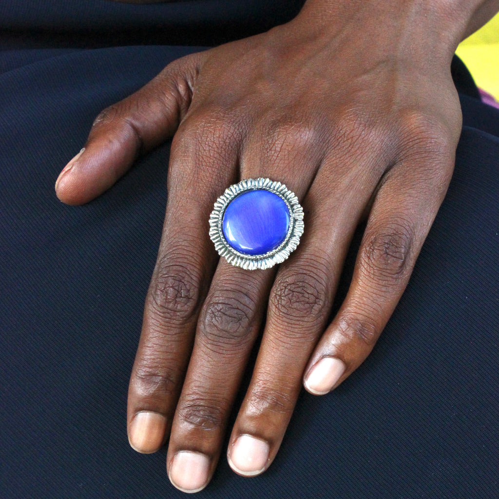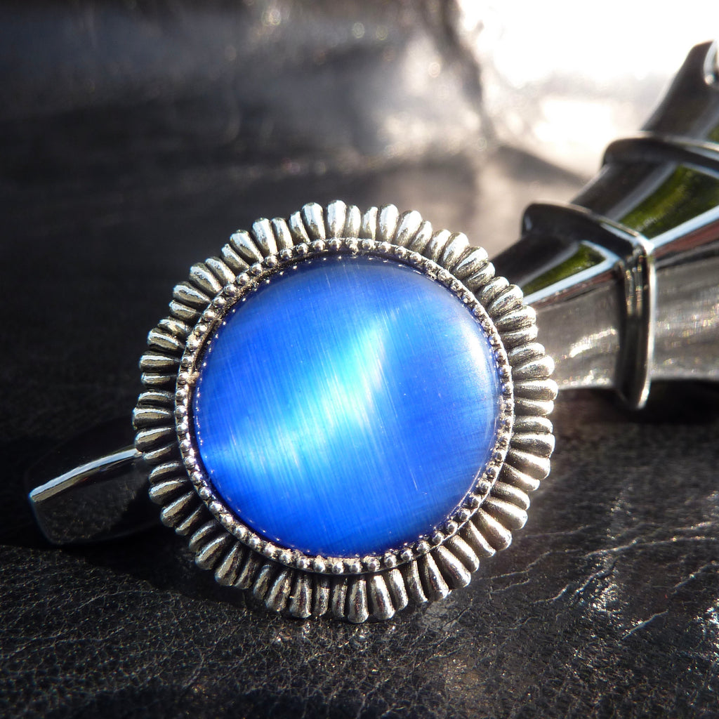 Bague Réglable Ronde Cabochon en Verre Œil de Chat Bleu Roy