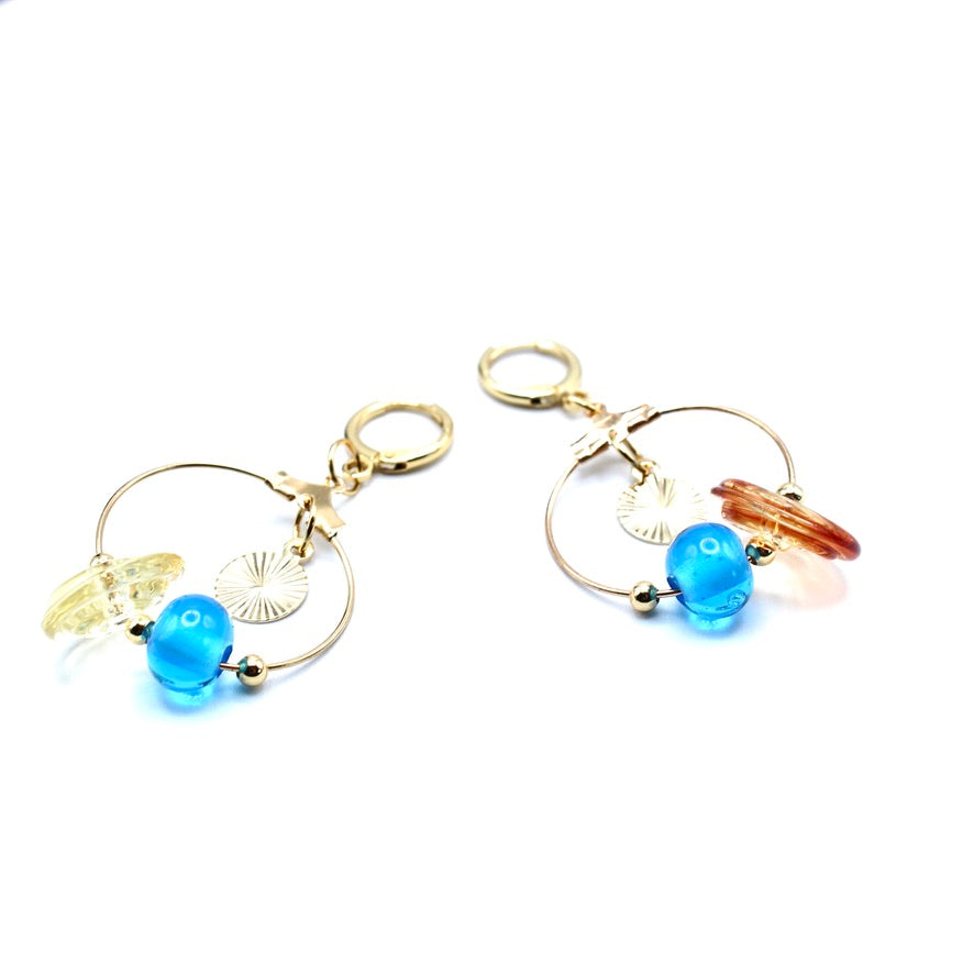 Boucles dorées à l'or fin Murano Créoles Disc Sun Blue 4