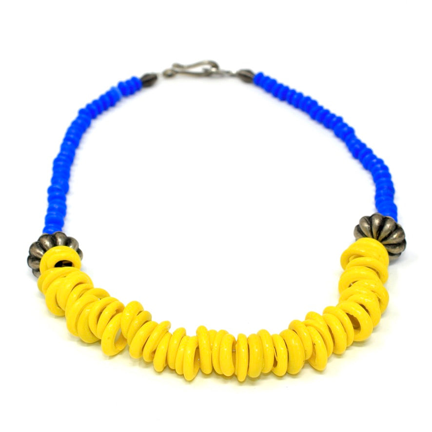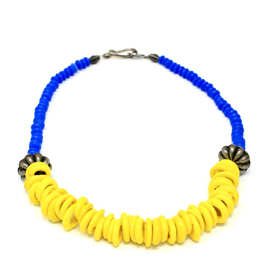 Collier Perles Heishis Murano Mondriana Blue Yellow