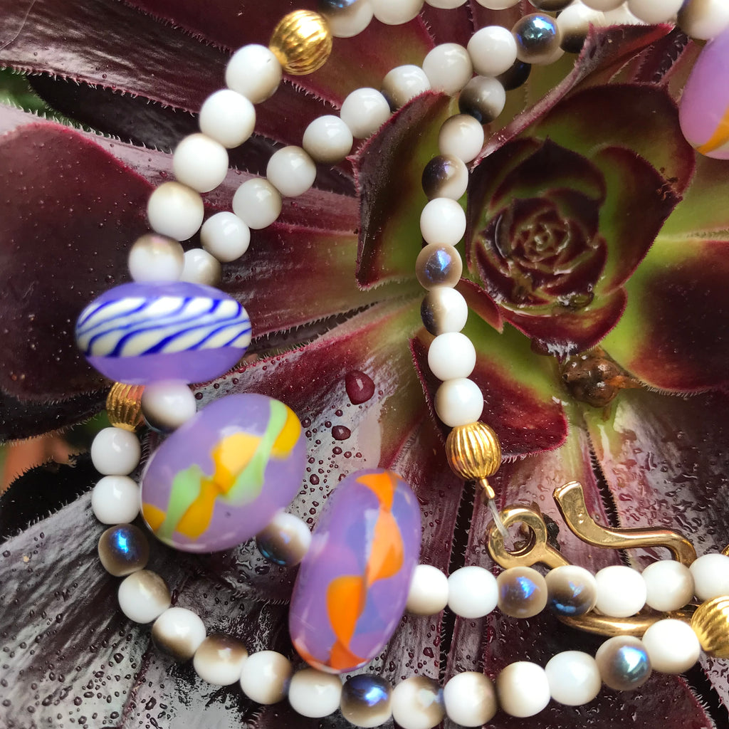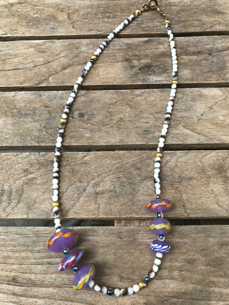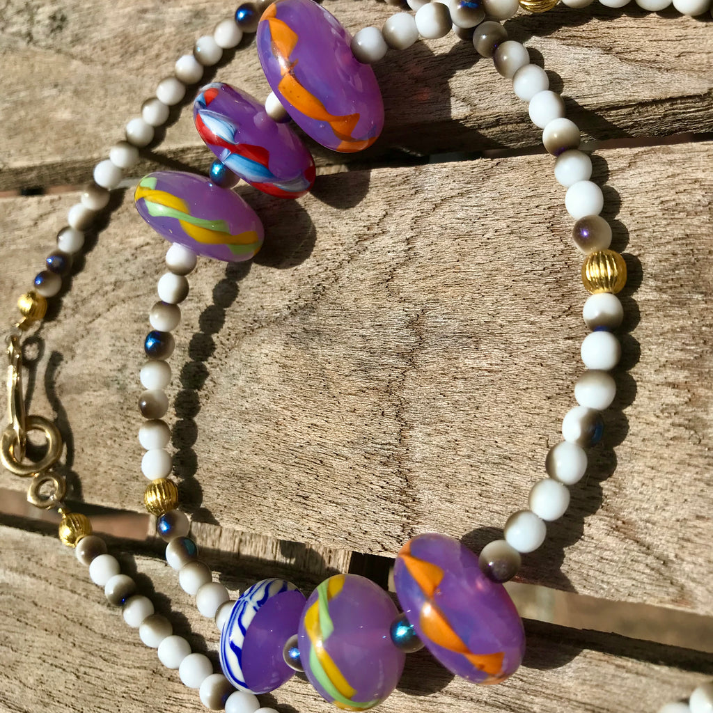 Collier mi-long Perles d'art filé à la flamme en verre de Murano