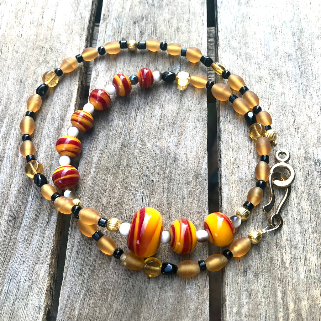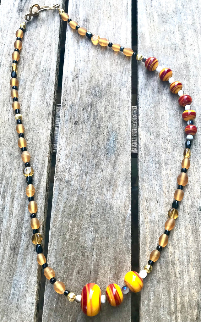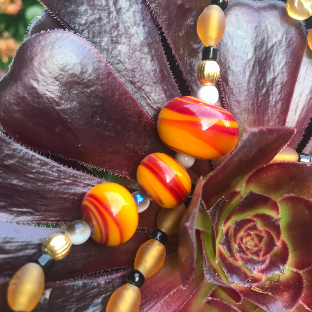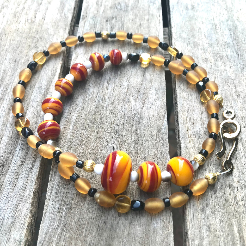 Collier mi-long Perles d'art filé à la flamme en verre de Murano