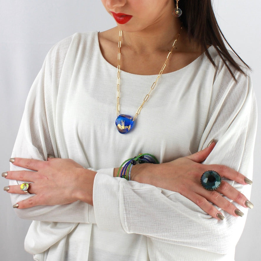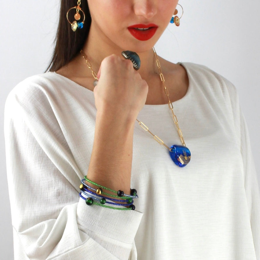 Collection Pépites de bijoux dorés à l'or fin autour de Perles en verre de Murano filé au chalumeau créées par Pasc@l le Perlier d'art maison dans notre atelier dédié et/ou couplées à des perles précieuses ou semi-précieuses naturelles !
