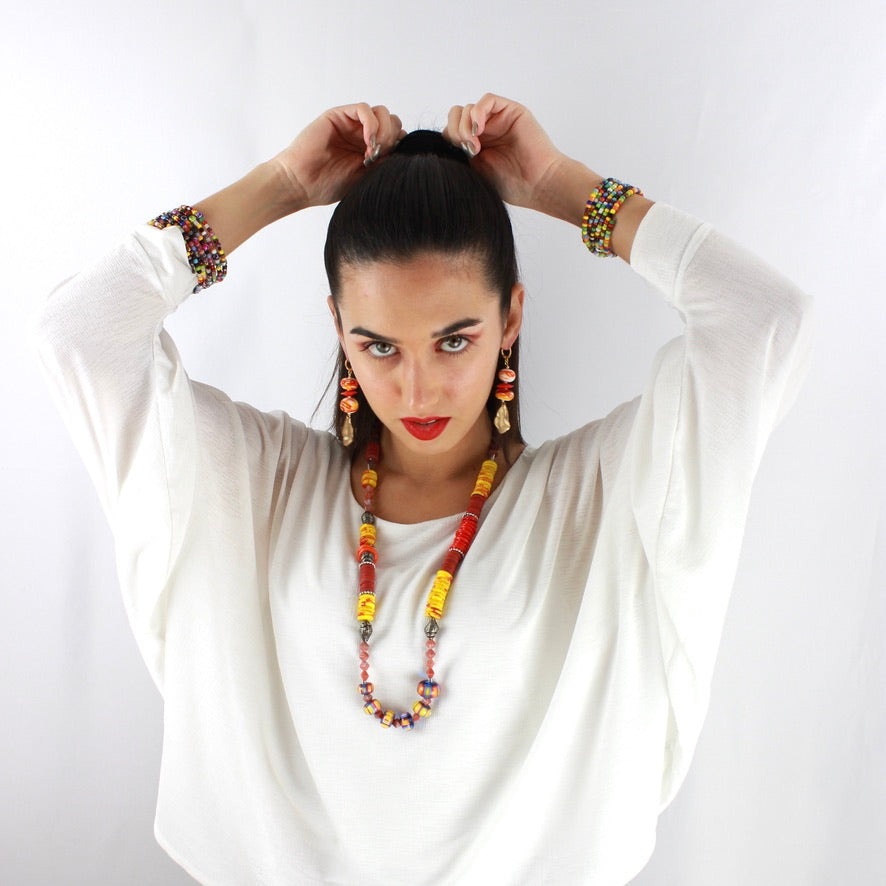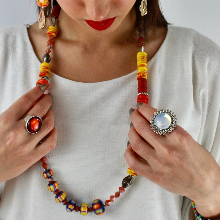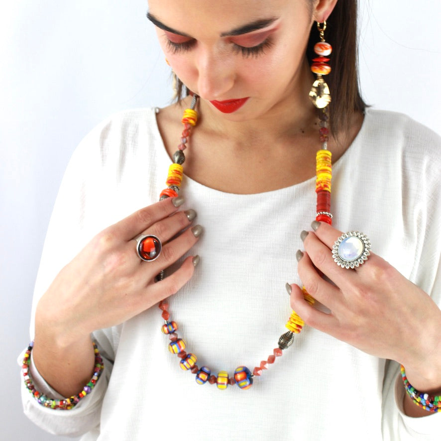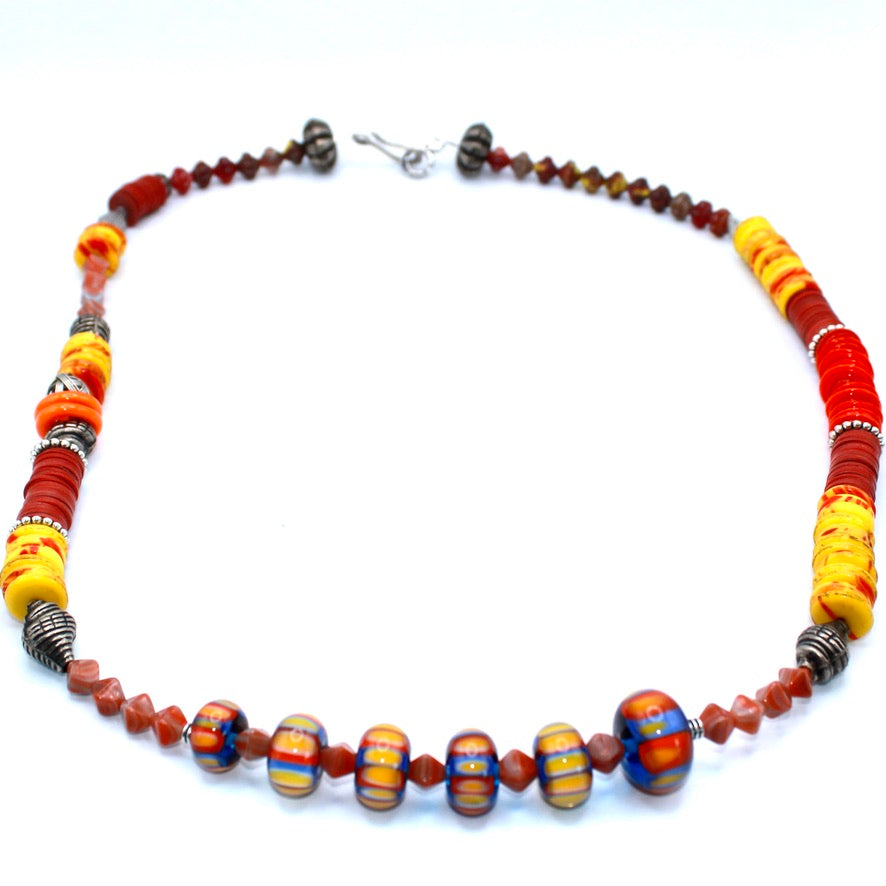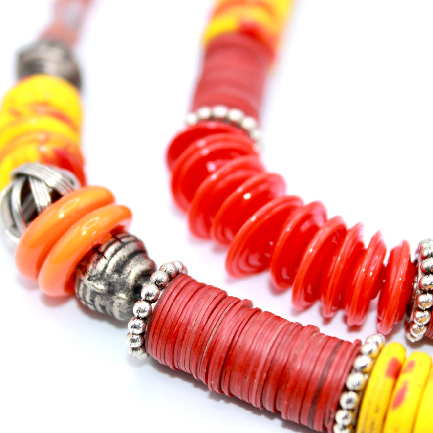 Perles disques africaines artisanales Mix Krobo jaune et rouge trade beads vintage