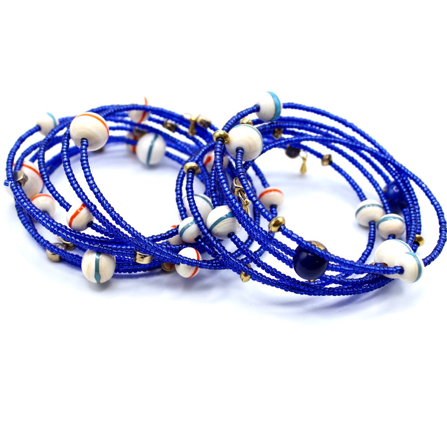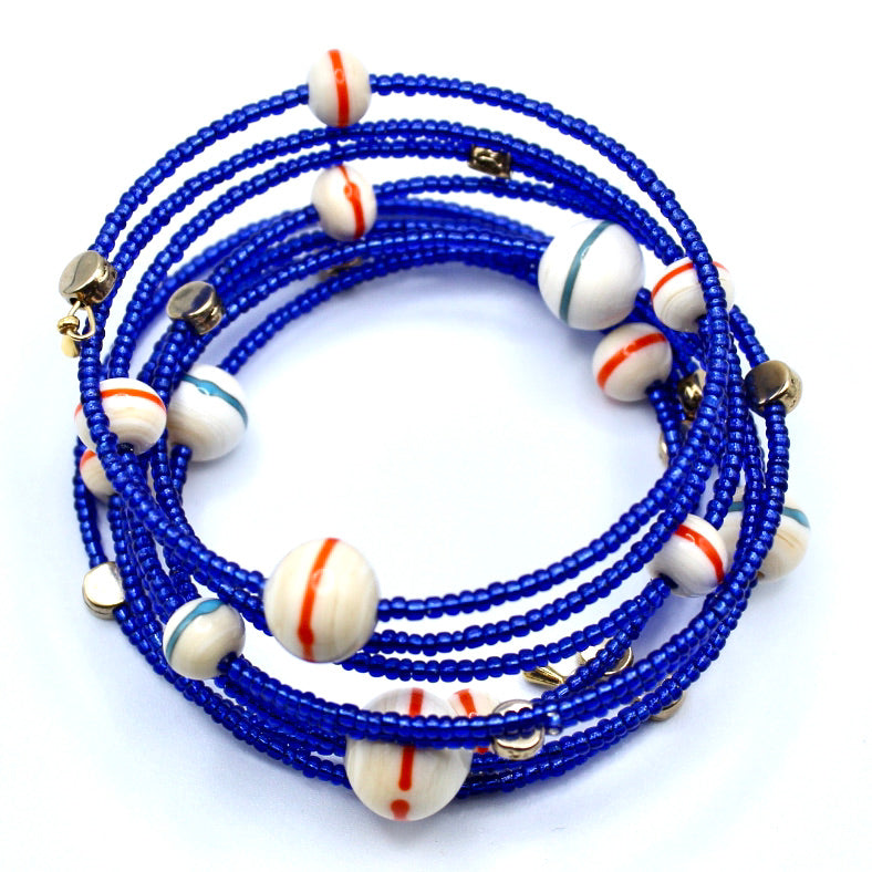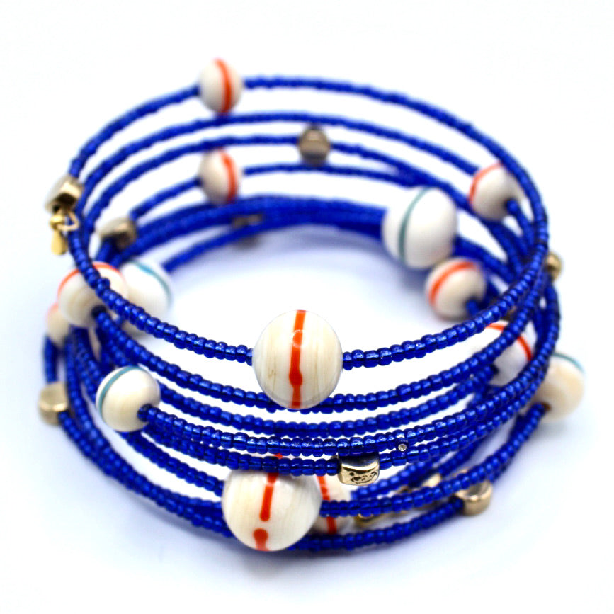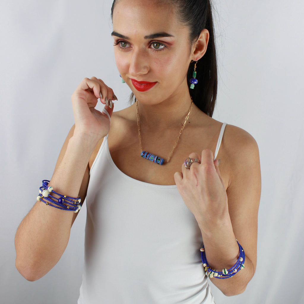 aux couleurs de l'azur composé de 9 rangs multicolores de perles