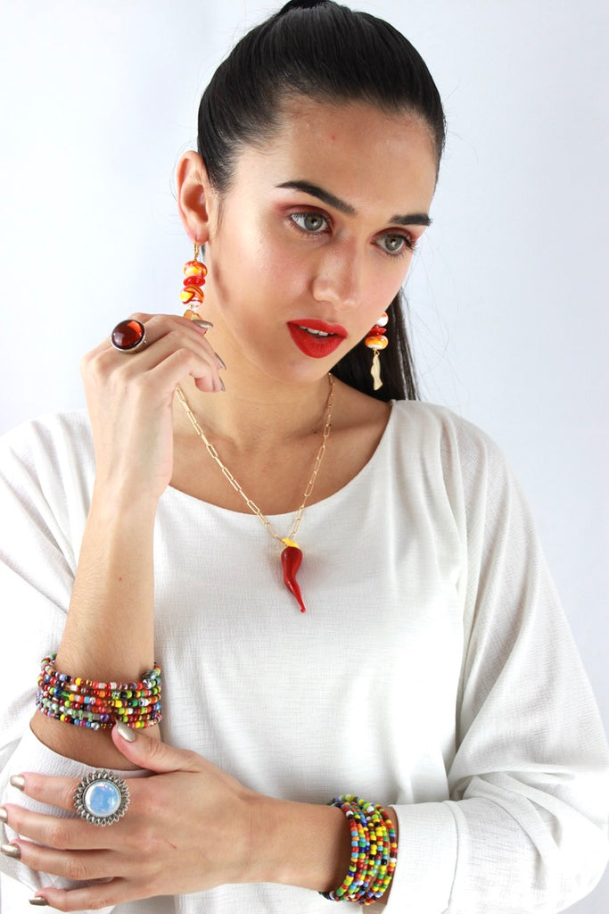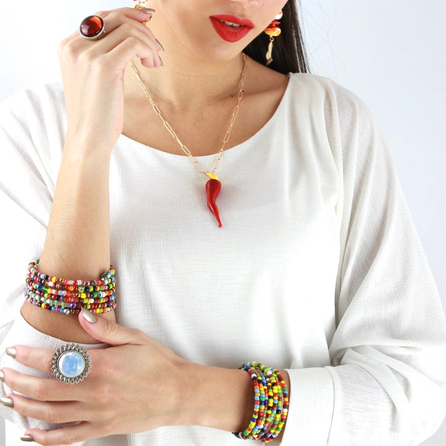 Collier mi-long Doux Piment Murano Collier doré à l'or fin