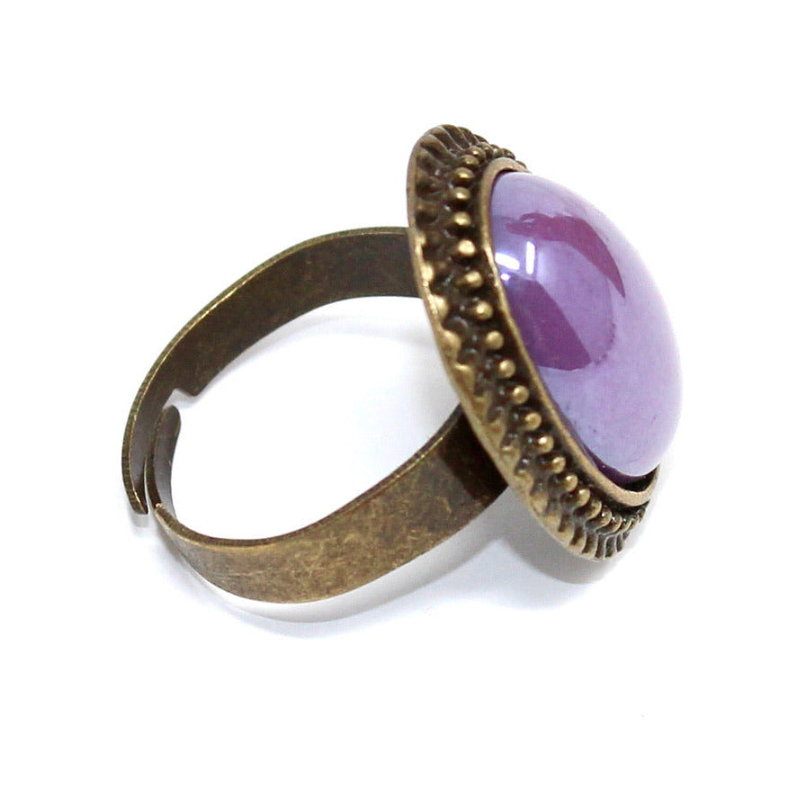 Bague Réglable Ovale Clara Cabochon Uni vers l'Uni violette