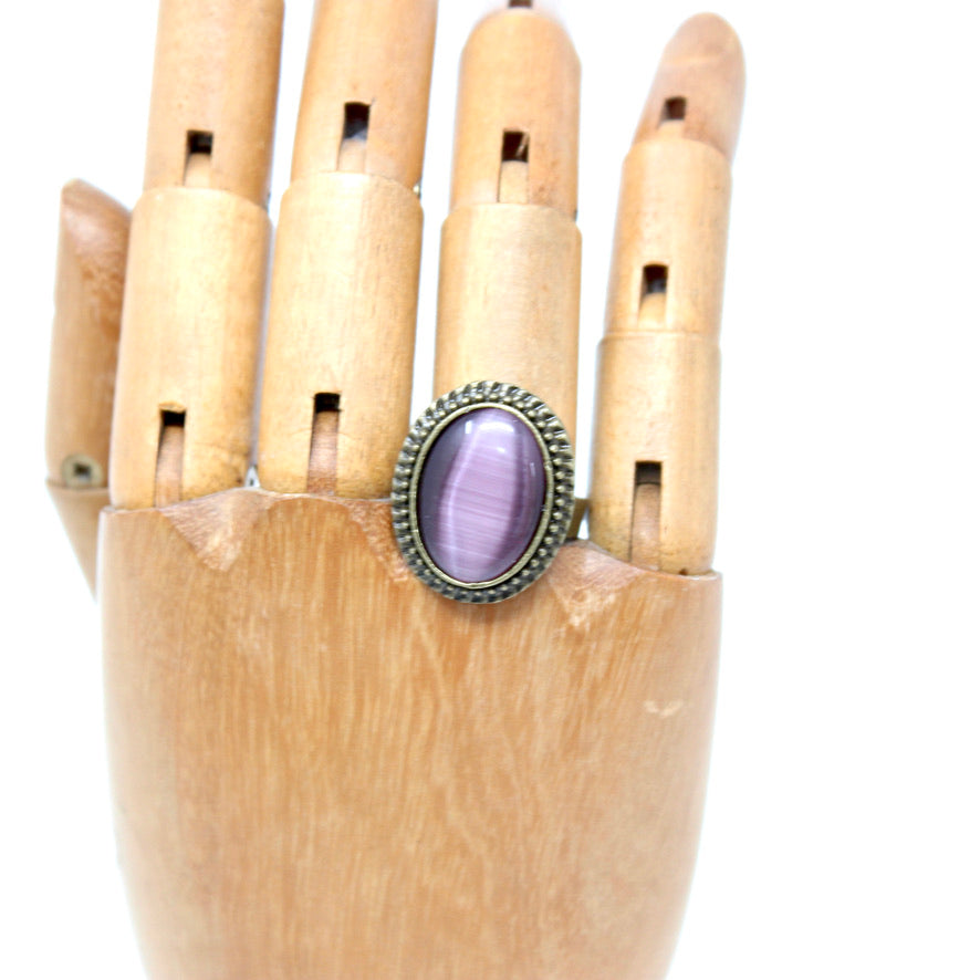 Bague ovale ajustable cabochon bombé en verre œil de chat