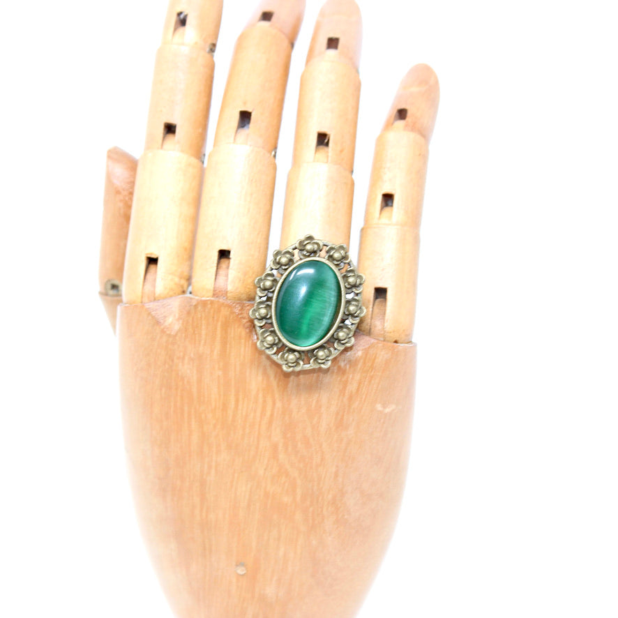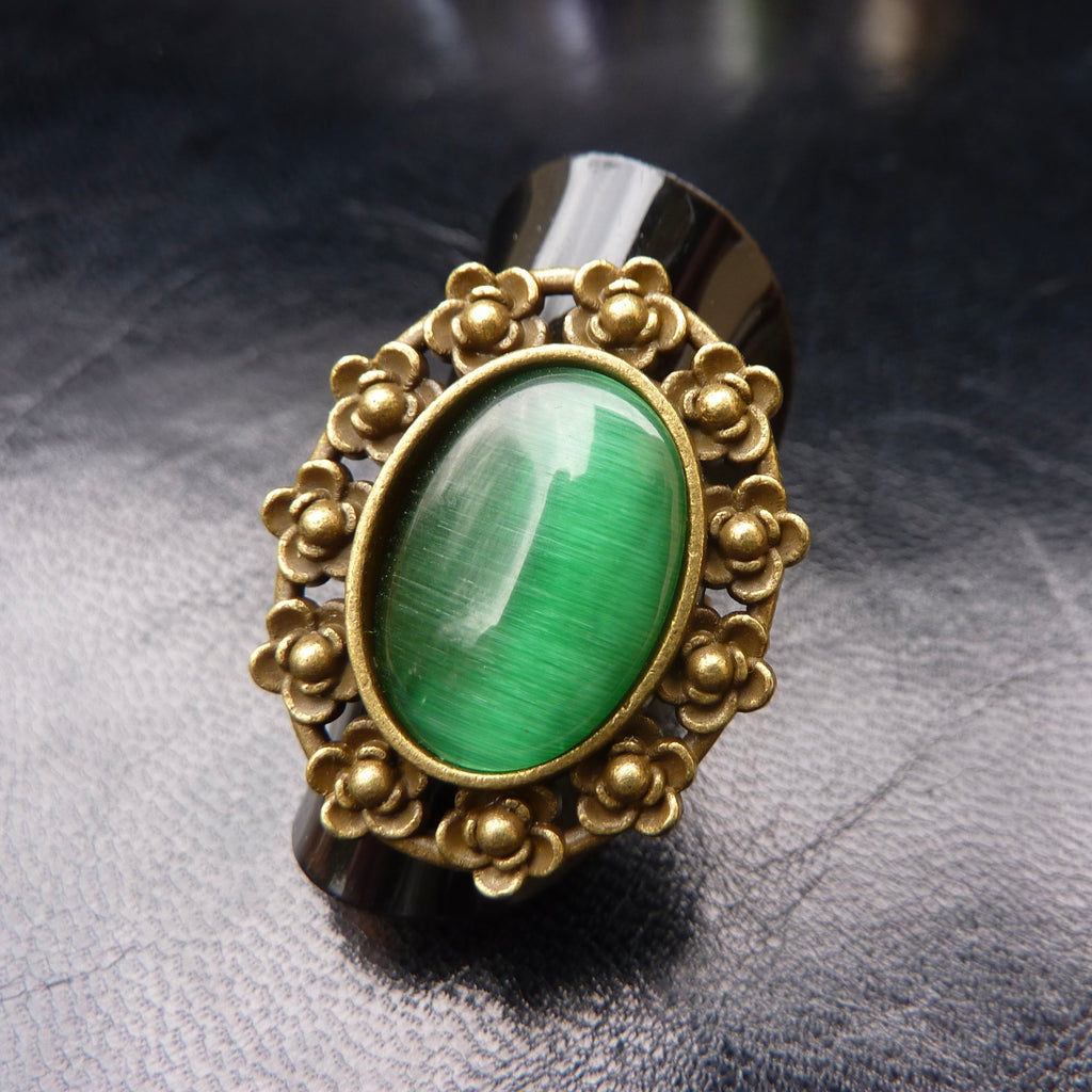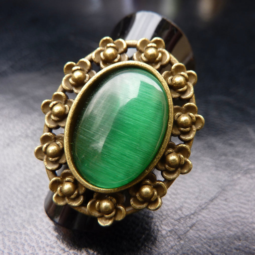 Bague ovale ajustable cabochon bombé en verre œil de chat