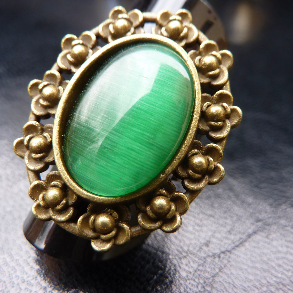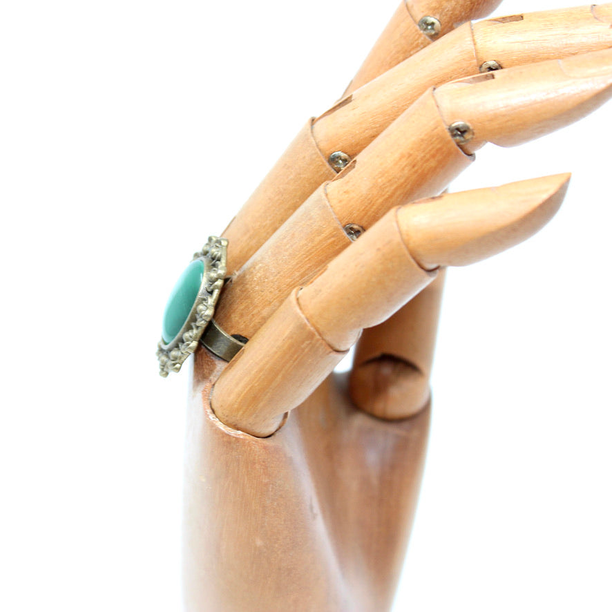 Bague Réglable Ovale Mina Cabochon Uni vers l'Uni verte