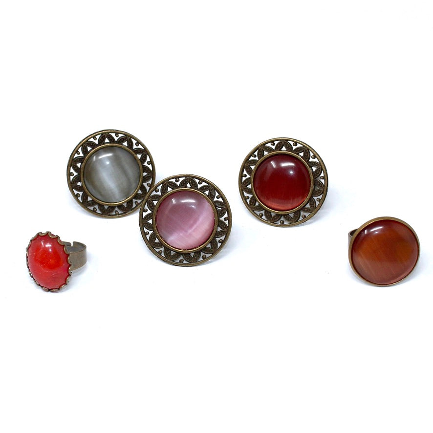 Bague ronde ajustable cabochon bombé en verre œil de chat